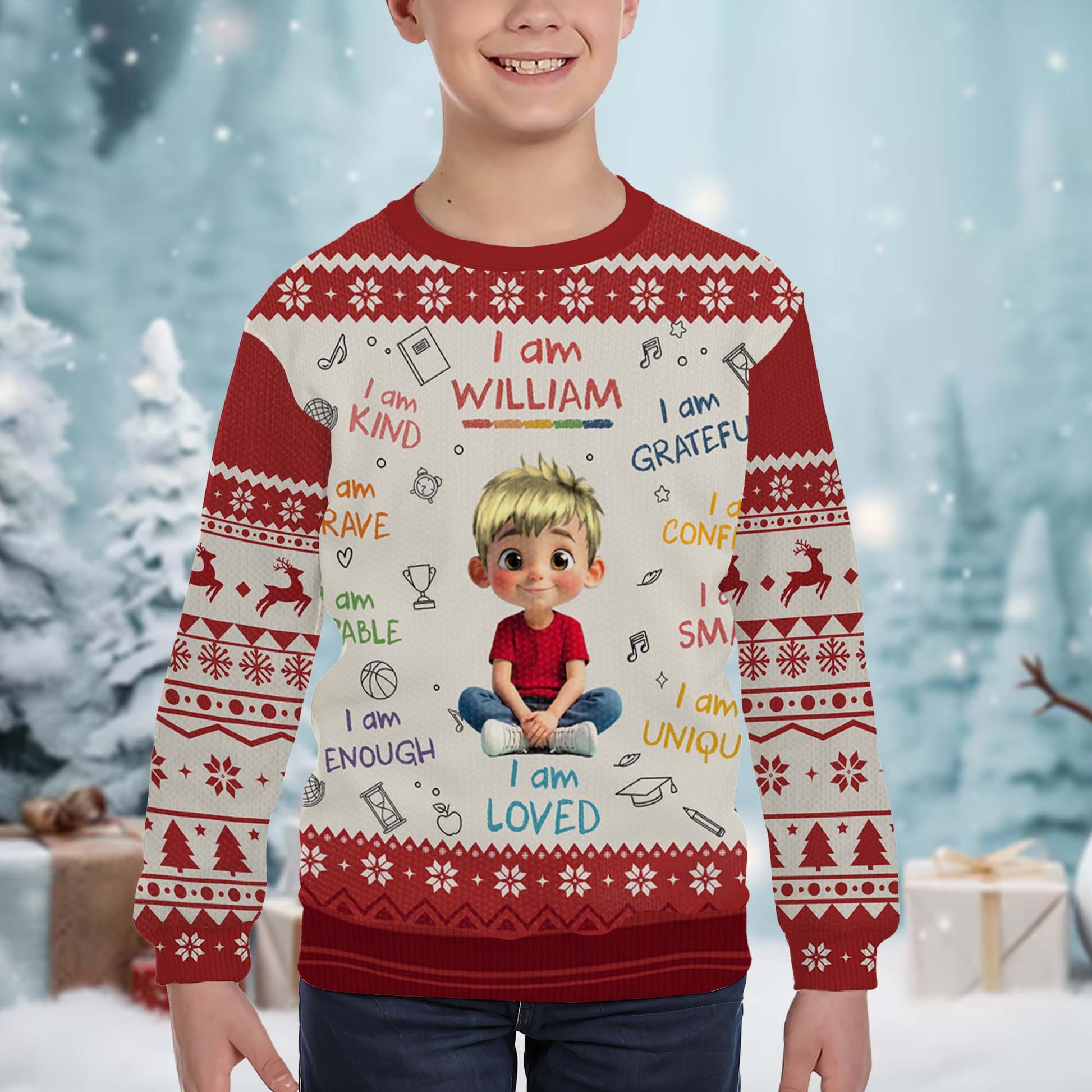 I Am Kind, Brave, Capable, Girl With Positive Affirmations - Personalized Custom Ugly Sweatshirt, Unisex Wool Jumper - KID355_TWS