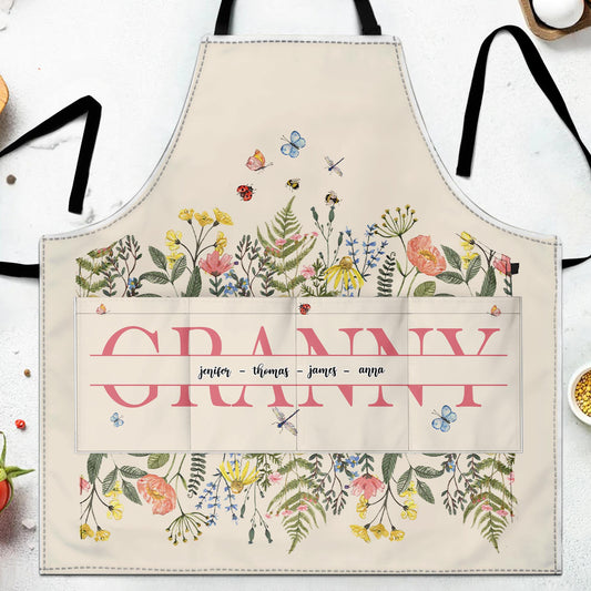 Granny, Flowers and Butterflies Apron - Personalized Apron - GRM067_AAP