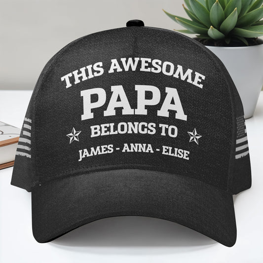 This Awesome Papa Belongs To, Stars And Stripes Design - Personalized Classic Cap - DAD219_CCAP