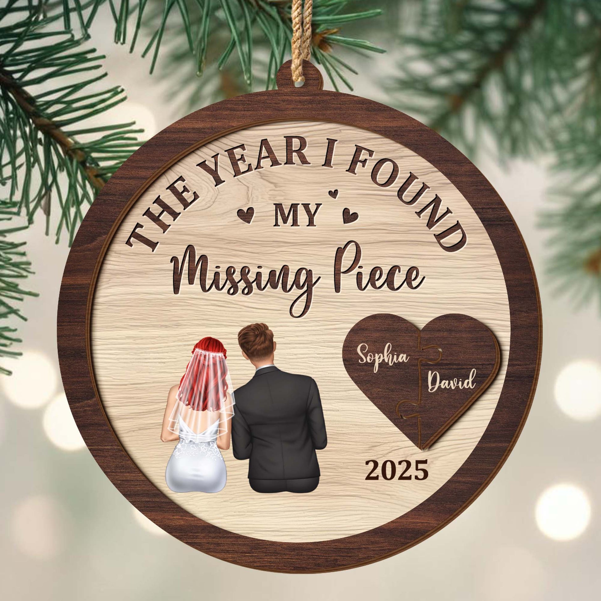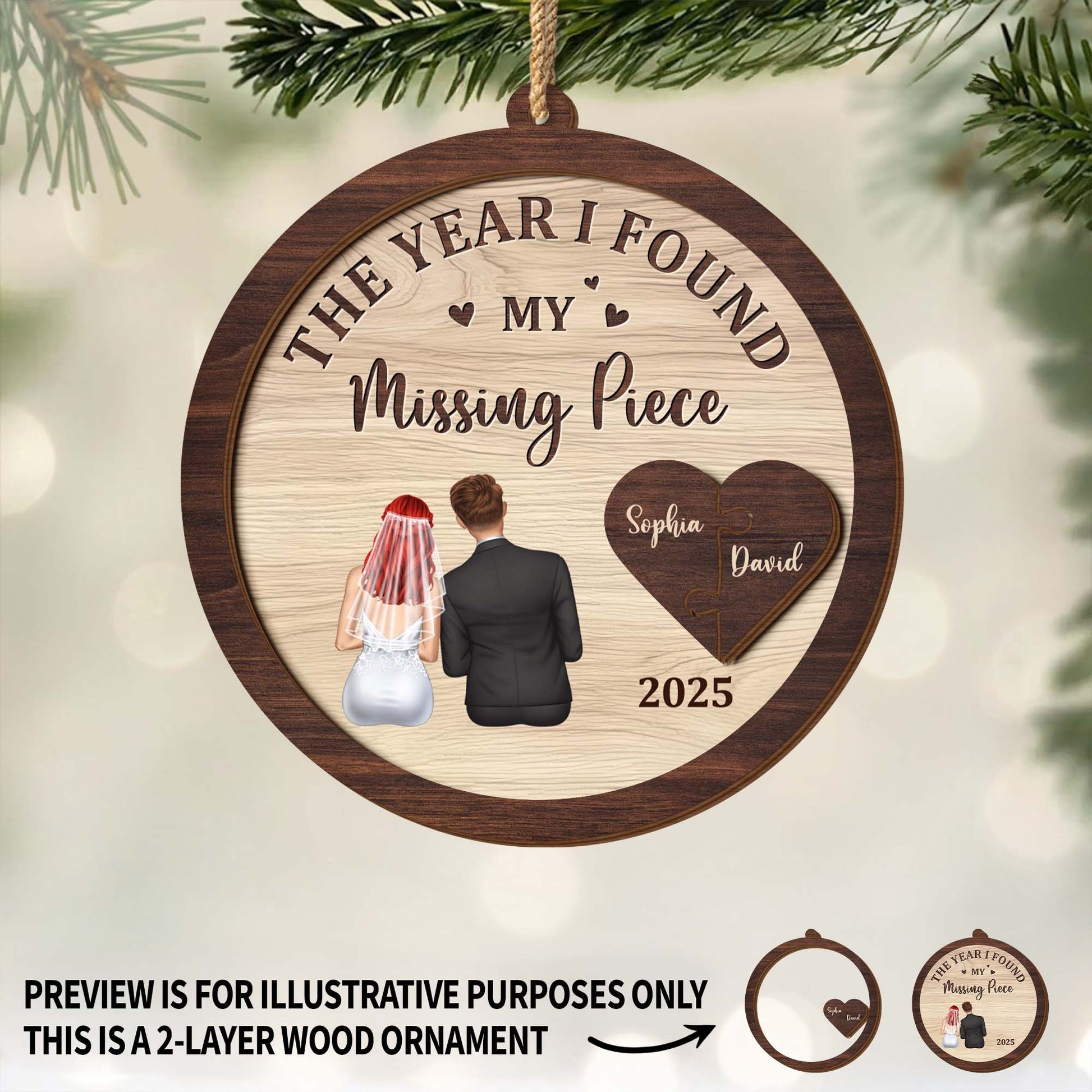 The Year I Found My Missing Piece, Personalized Double Layer Wood Ornament, Gift For Couples