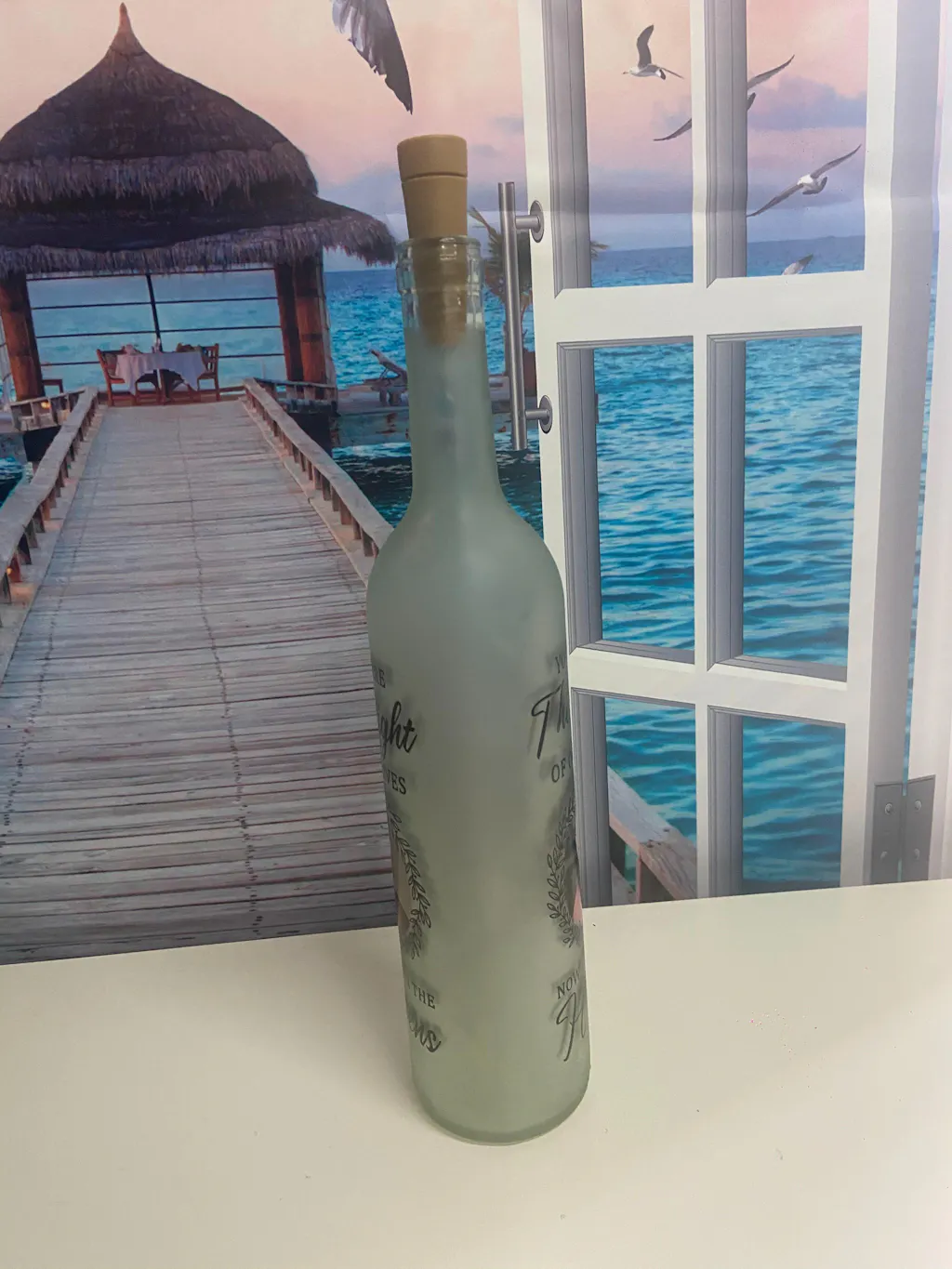 Add a personal touch to your space with this timeless Bottle Lamp, a glowing symbol of love and togetherness.