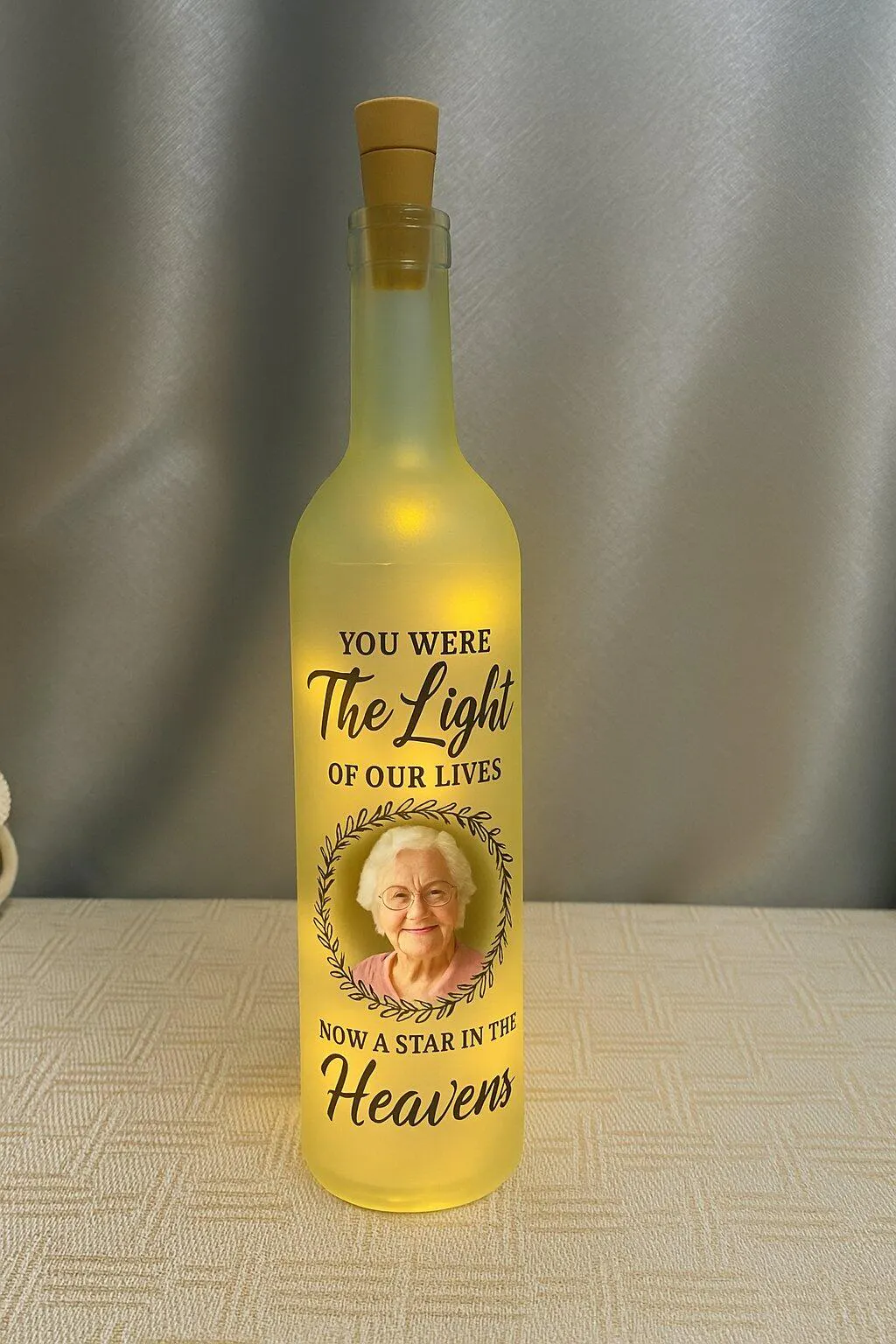 You Were The Light Of Our Lives, Laurel Wreath Decor - Personalized Bottle Lamp - HME172_BTL
