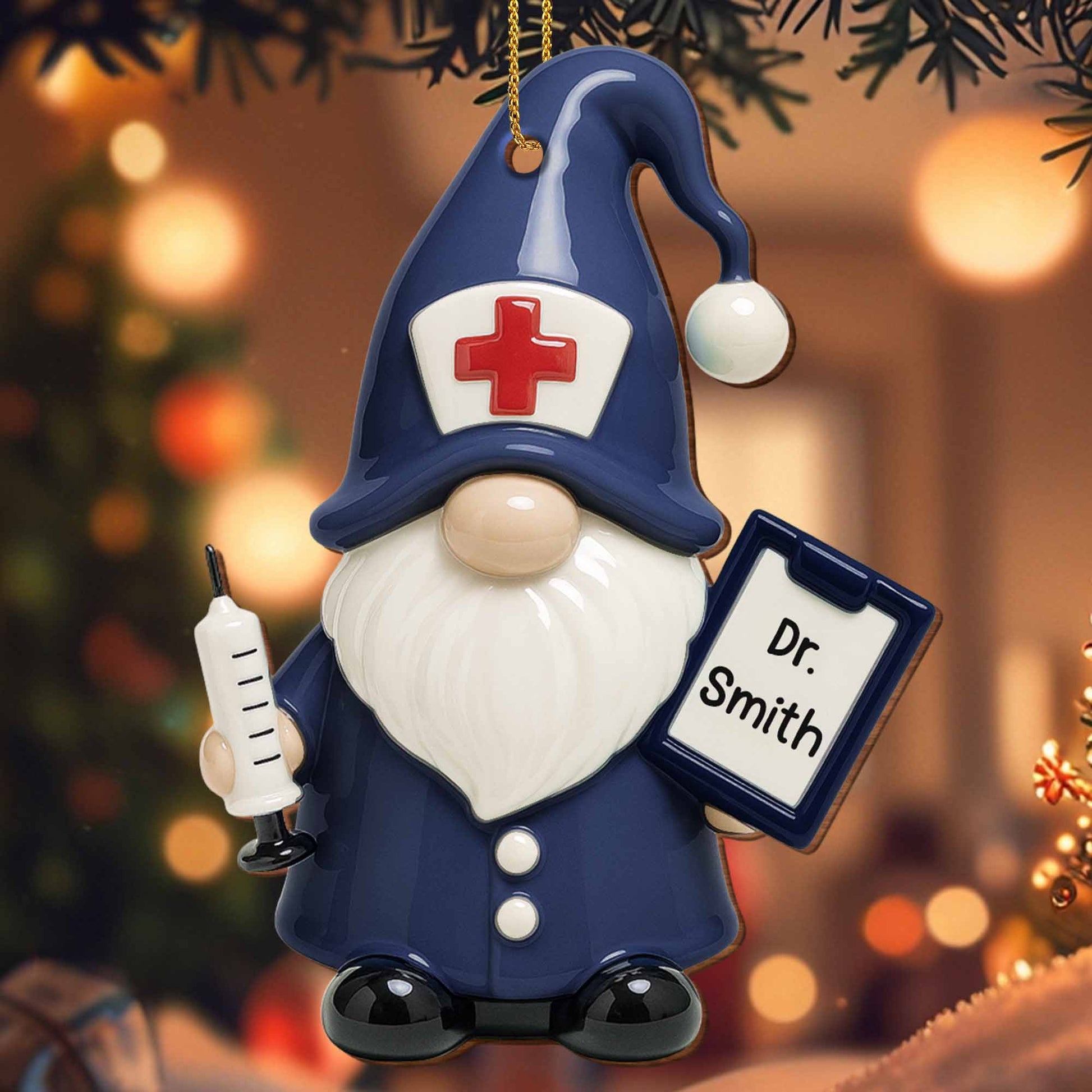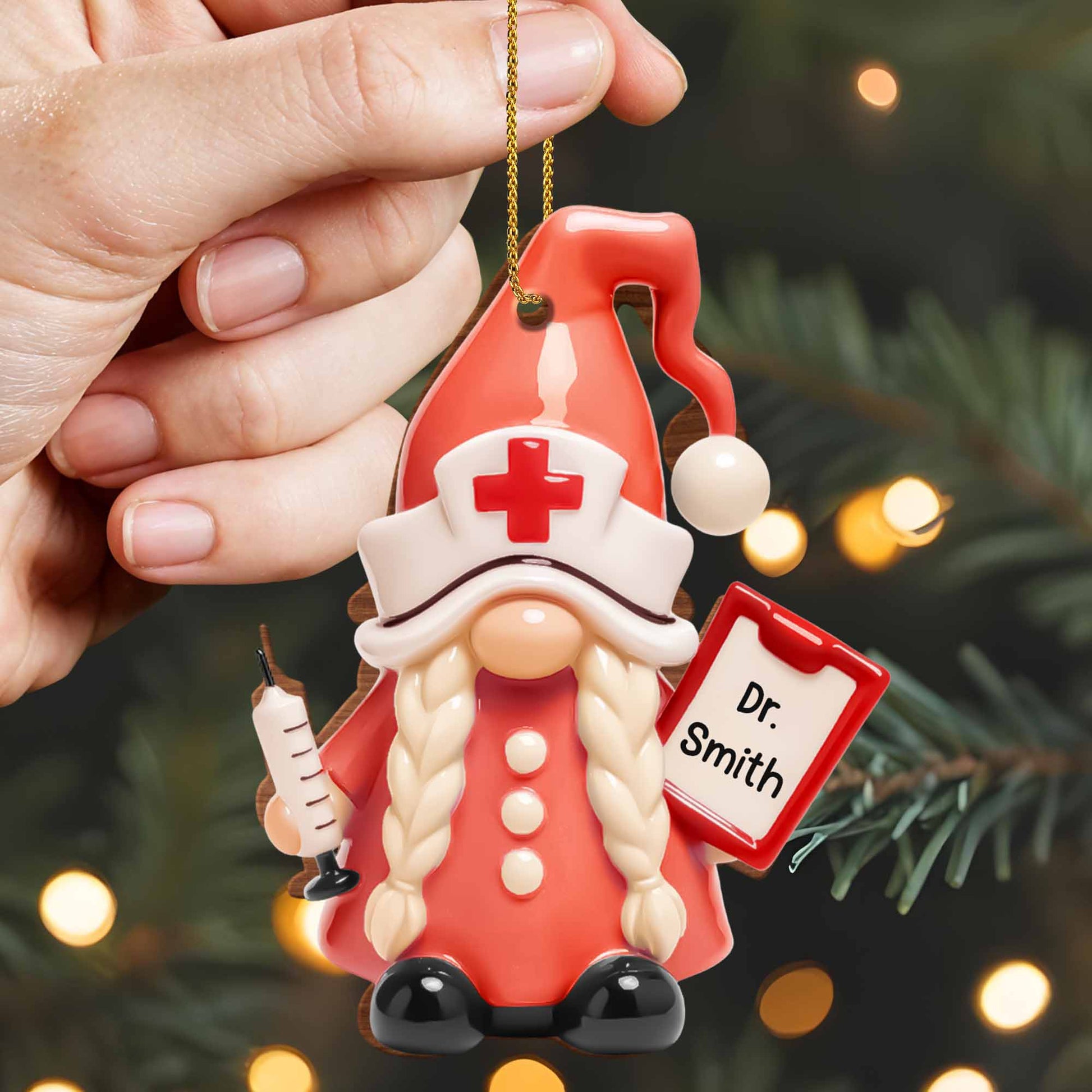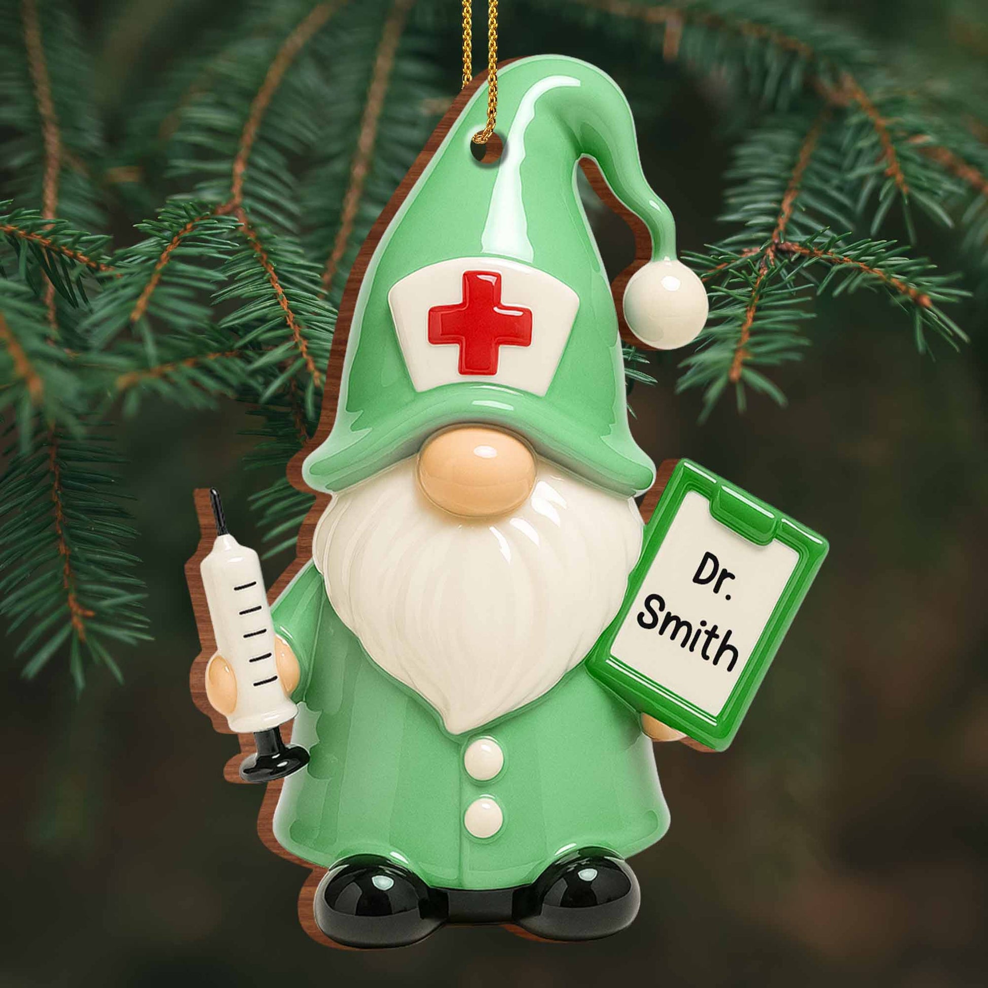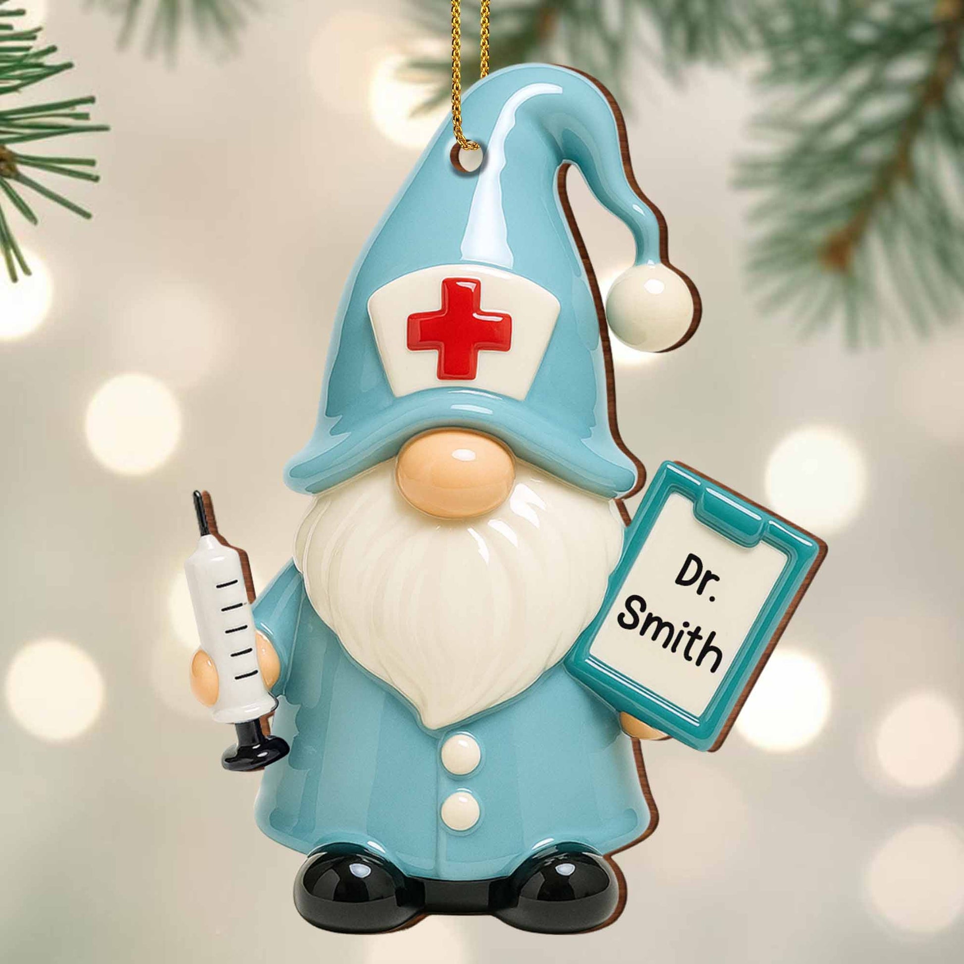 Charming Tribute To Healthcare Heroes, Gnome Doctor - Personalized Custom Wood Ornament, Custom Shaped - DOC043_WDO