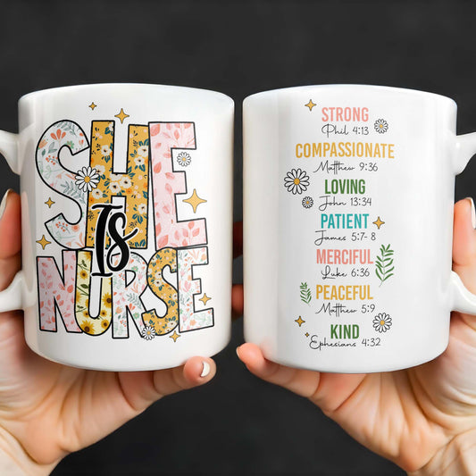 Strong, Compassionate, Loving, Patient, Merciful, Peaceful, Kind, Flowers and Stars - Personalized Custom Coffee Mug - NUR014_MG
