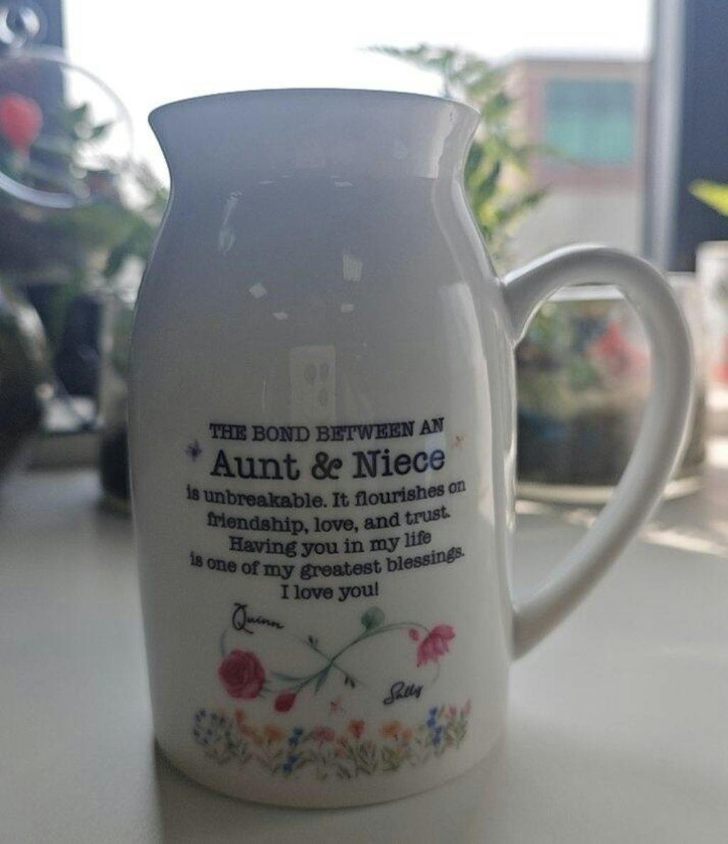 The Bond Between An Aunt & Niece, Flowers Design, Personalized Ceramic Flower Vase, Gift For Family