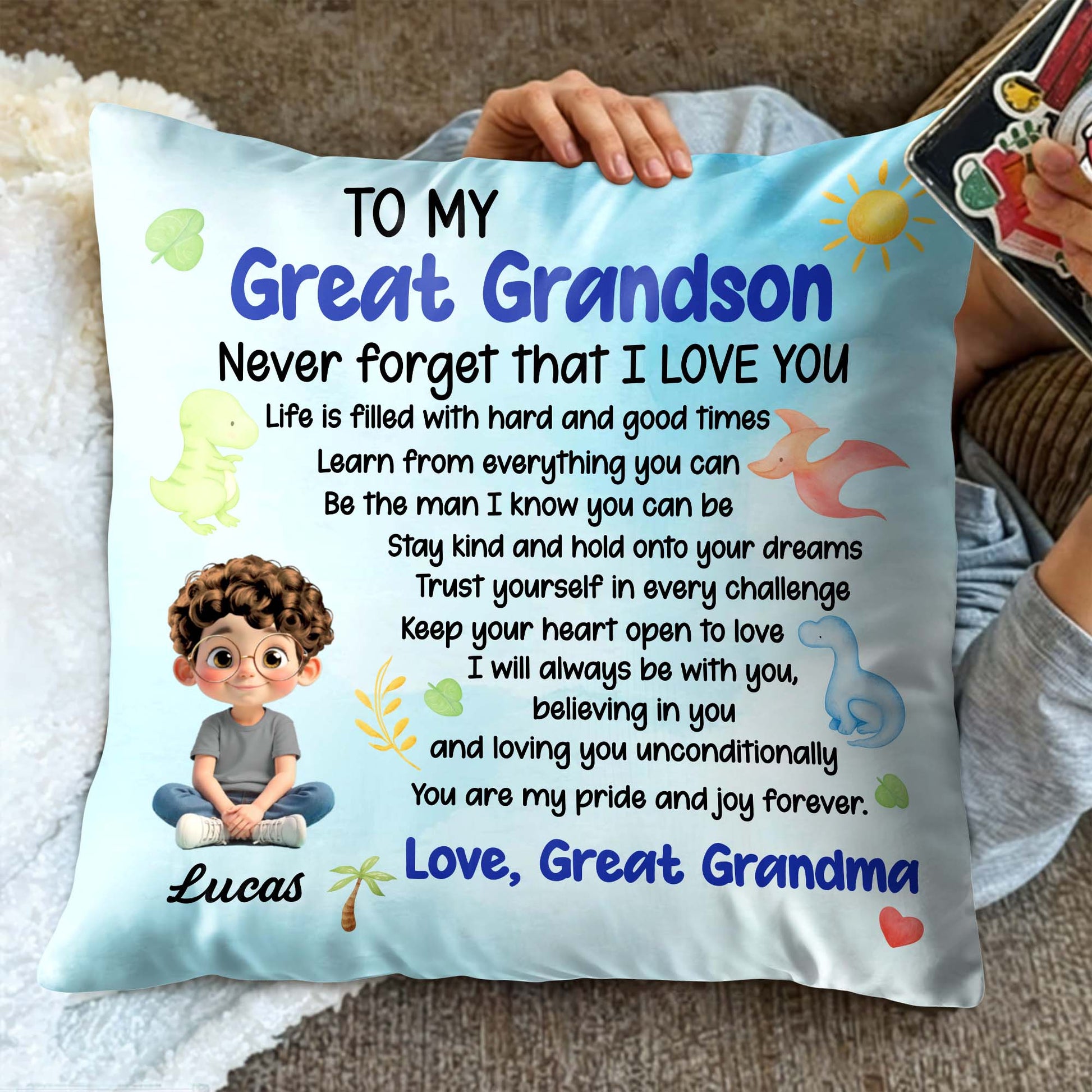 Never Forget That I LOVE YOU, Boy, Sun, Butterflies, Pillow, Gift For Great Grandson