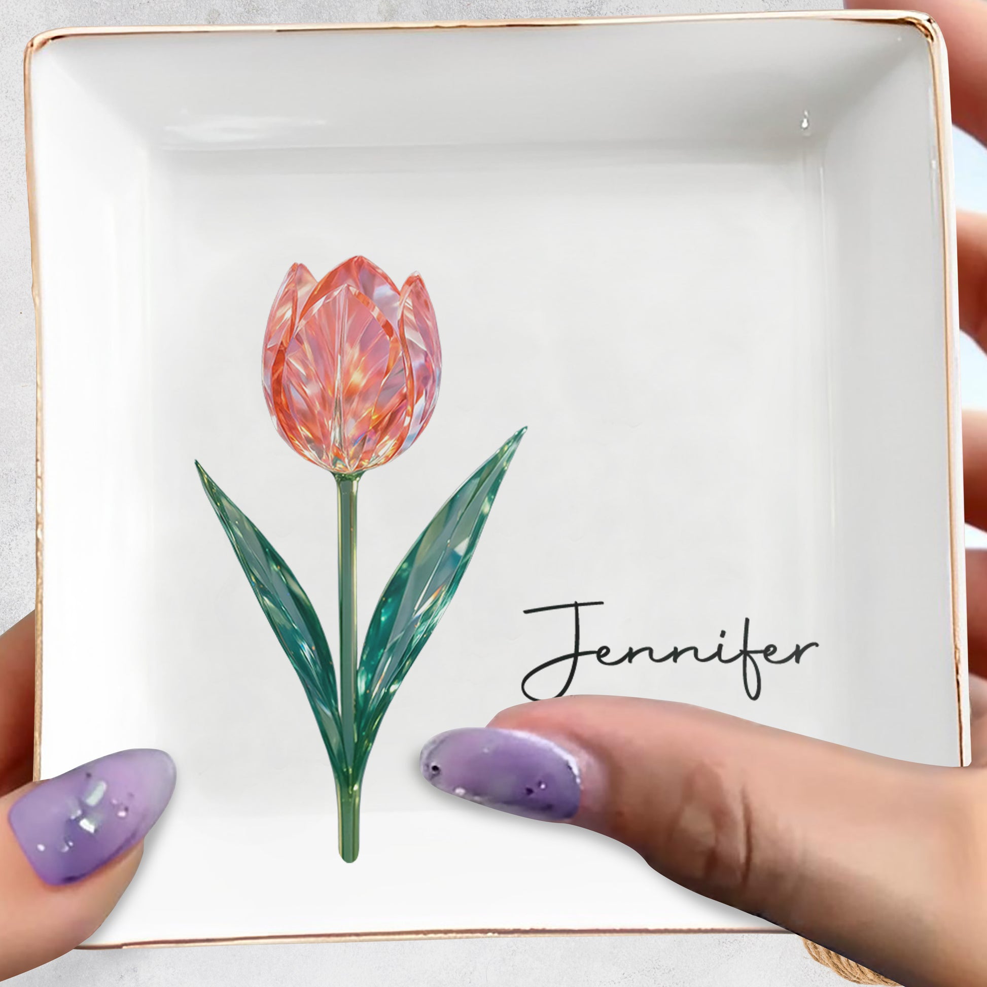 Elegantly Personalized Tulip Design Jewelry Dish, Custom Jewelry Dish, Gift For Wife and Family