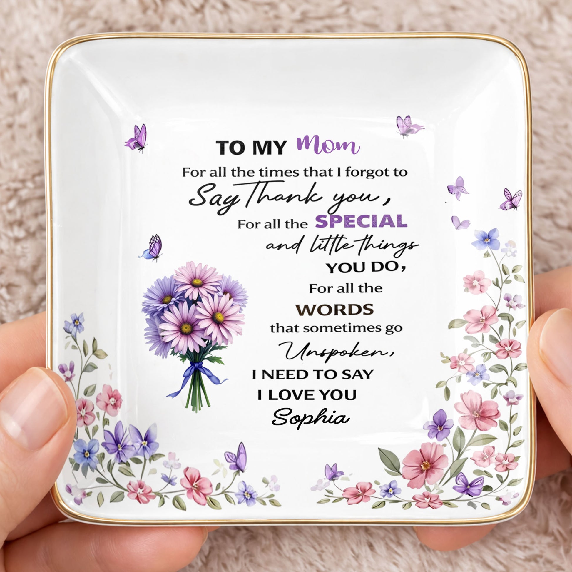 To My Mom For All The Times Flowers And Butterflies - Personalized Custom Jewelry Dish, Ceramic Dish, Square Shape - MOM154_SCRF