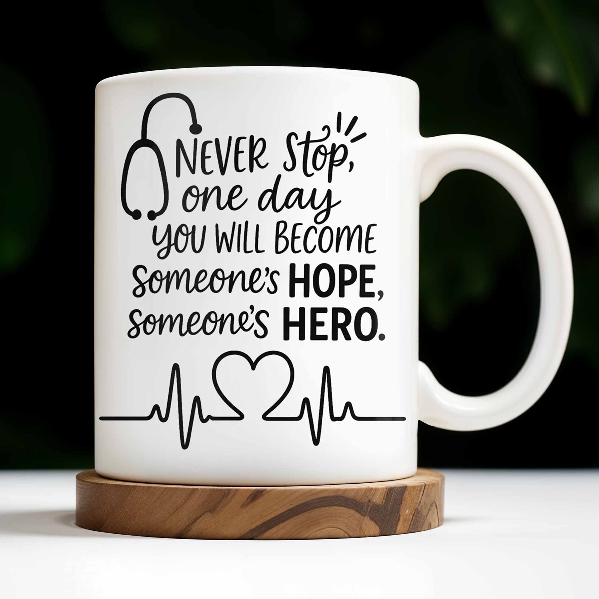 Never Stop, One Day You Will Become Someone's Hope, Someone's Hero, Personalized Custom Coffee Mug, Gift For Medical Professionals