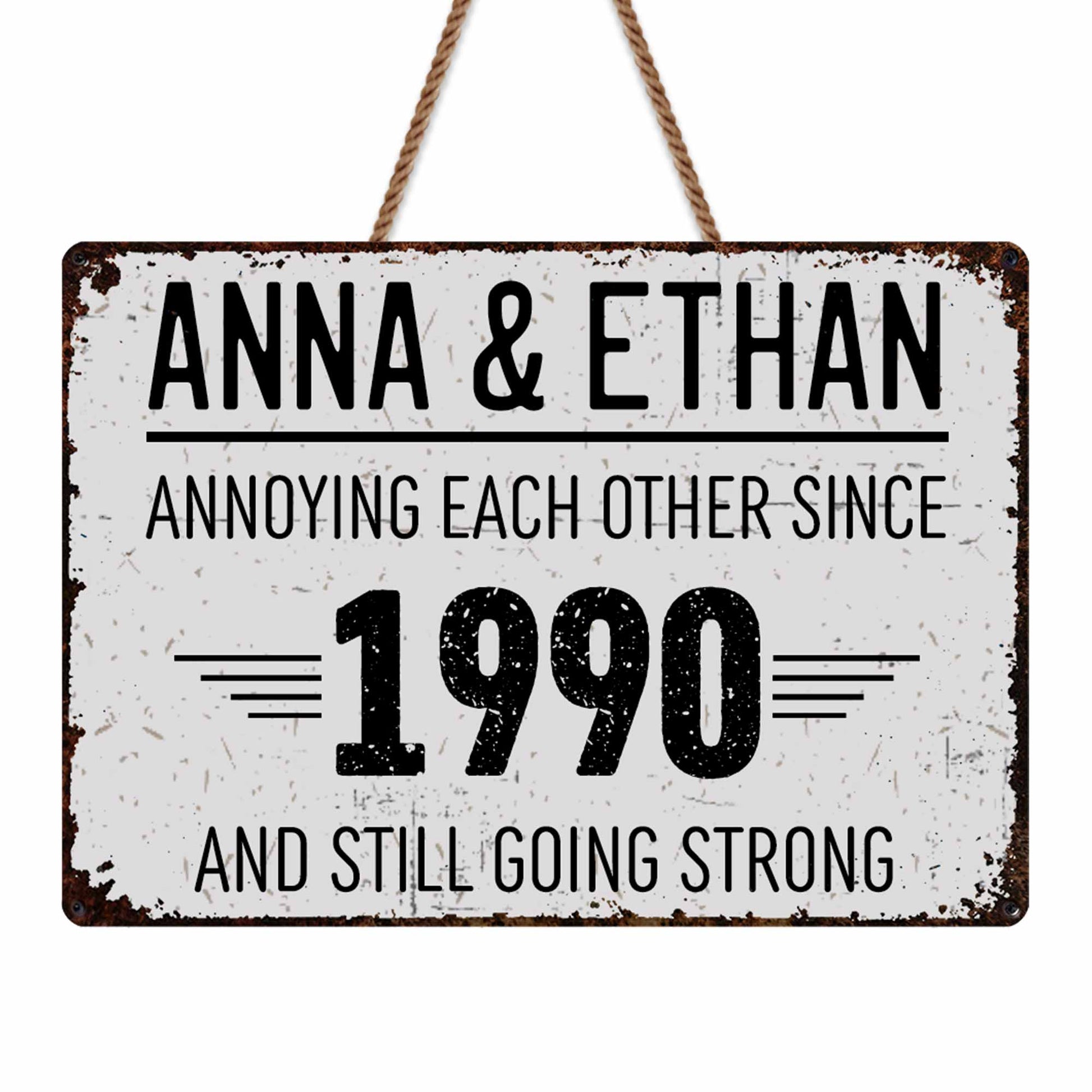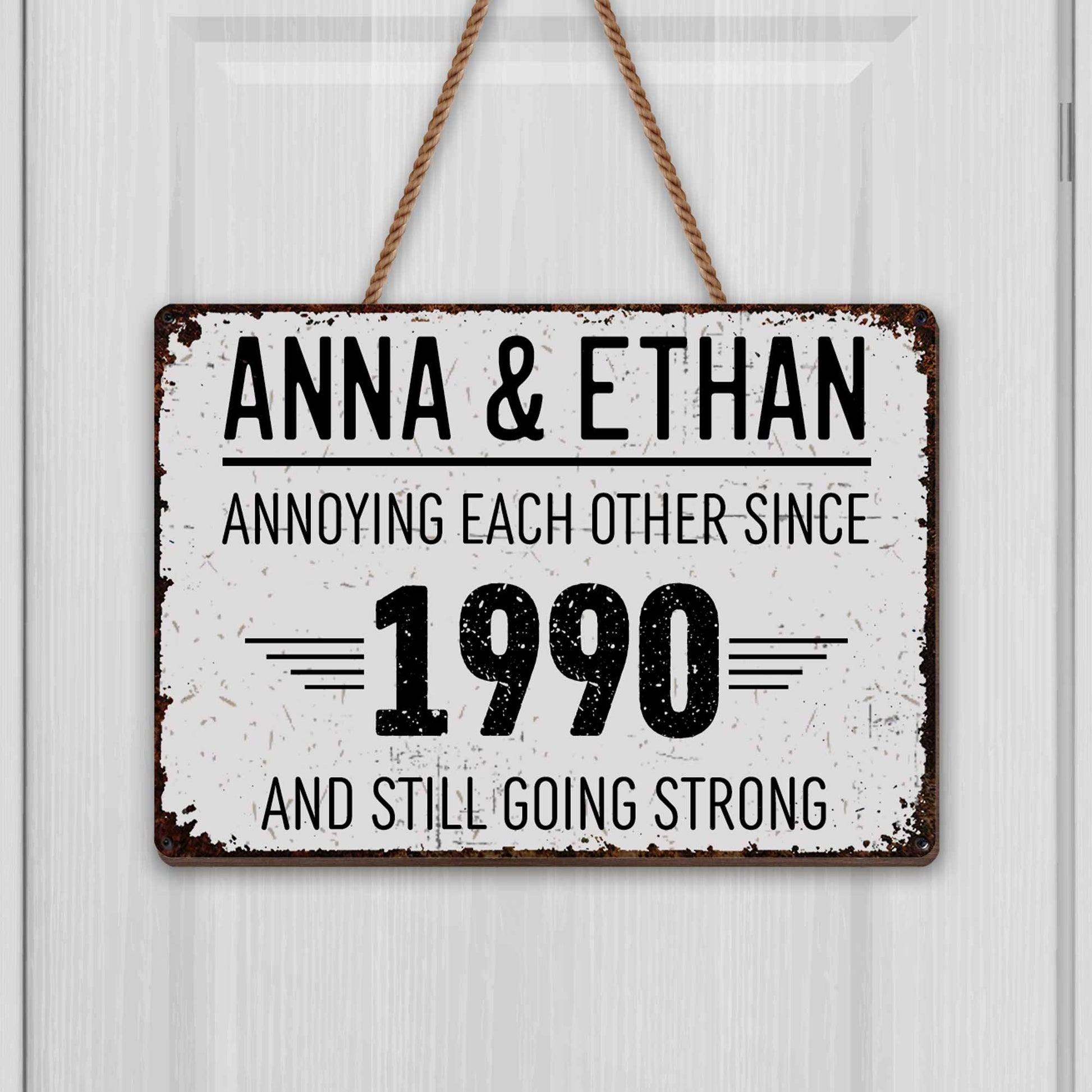 Annoying Each Other Since, Going Strong, Personalized Custom Shaped Wood Sign, Gift For Couples