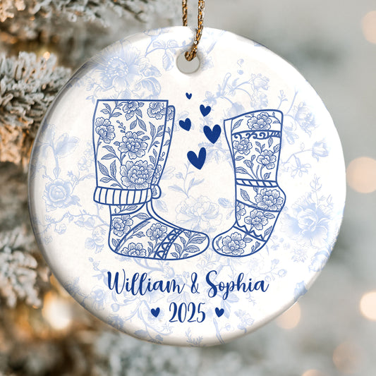 Celebrate Your Engagement With Love Ornament - Personalized Custom Ceramic Ornament With Heart Shape - CPL027_HCE