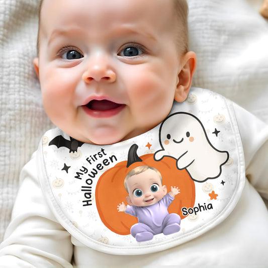 Mi primer Halloween con fantasma y calabaza - Babero personalizado para bebé - HALW024_BBB