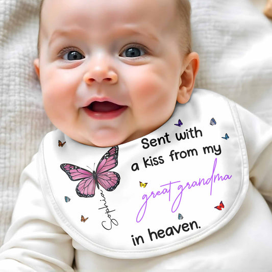 Con un beso de la bisabuela, diseño de mariposas - Babero personalizado - HME227_BBB