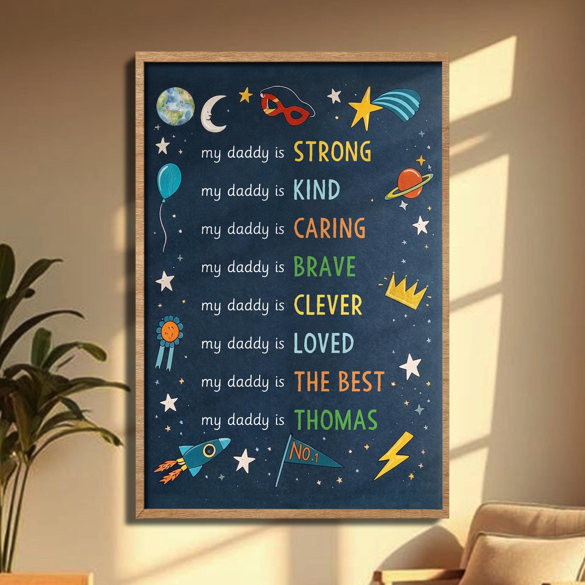 Message: my daddy is STRONG my daddy is KIND my daddy is CARING my daddy is BRAVE my daddy is CLEVER my daddy is LOVED my daddy is THE BEST
