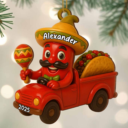 Adorno navideño familiar de camión vintage - Adorno de madera personalizado, forma personalizada - FAM440_WDO