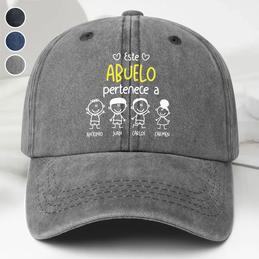 I'm Not Retired I'm A Full-Time Grandpa, Stick Figures - Personalized Custom Washed Denim Cap - GRP049_WDCAP