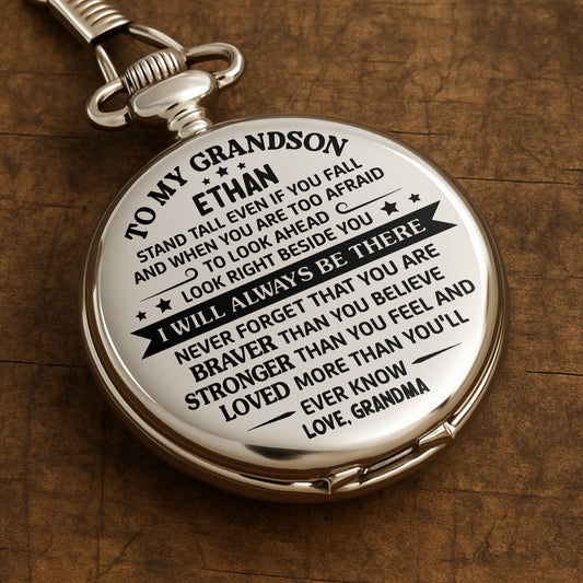 To My Son, Keep Pressing Forward - Personalized Silver Plated Pocket Watch - SON031_SWATCH