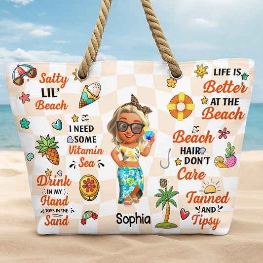 La vida es mejor en la playa con palmeras y sol - Bolsa de playa personalizada con asa de cuerda - GDT324_ROBAG