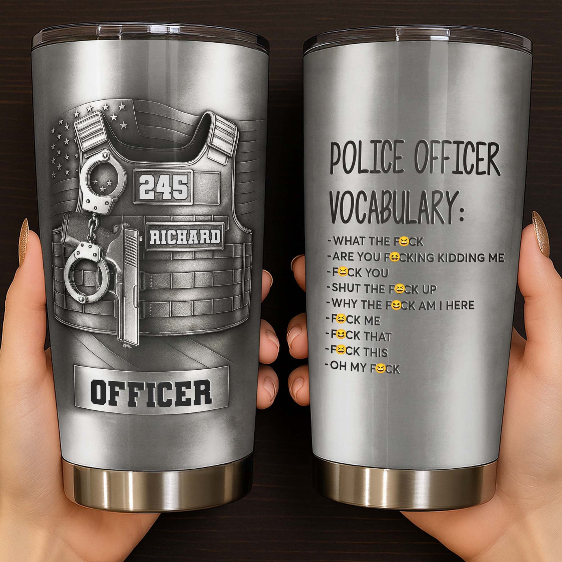 Police Officer Vocabulary Eff Words, Custom Stainless Steel Tumbler, Gift For Law Enforcement