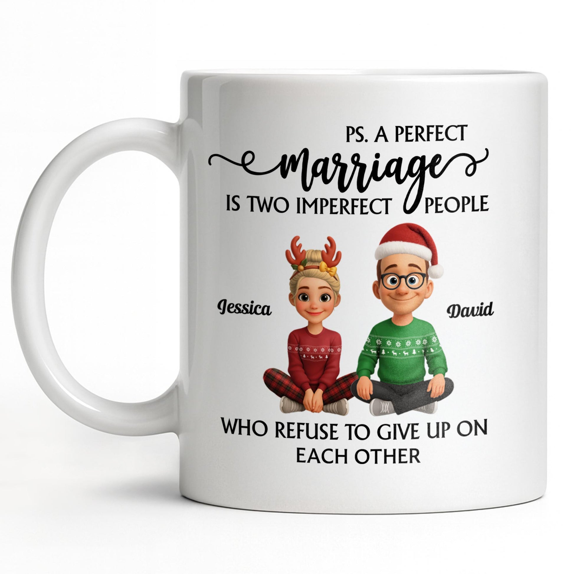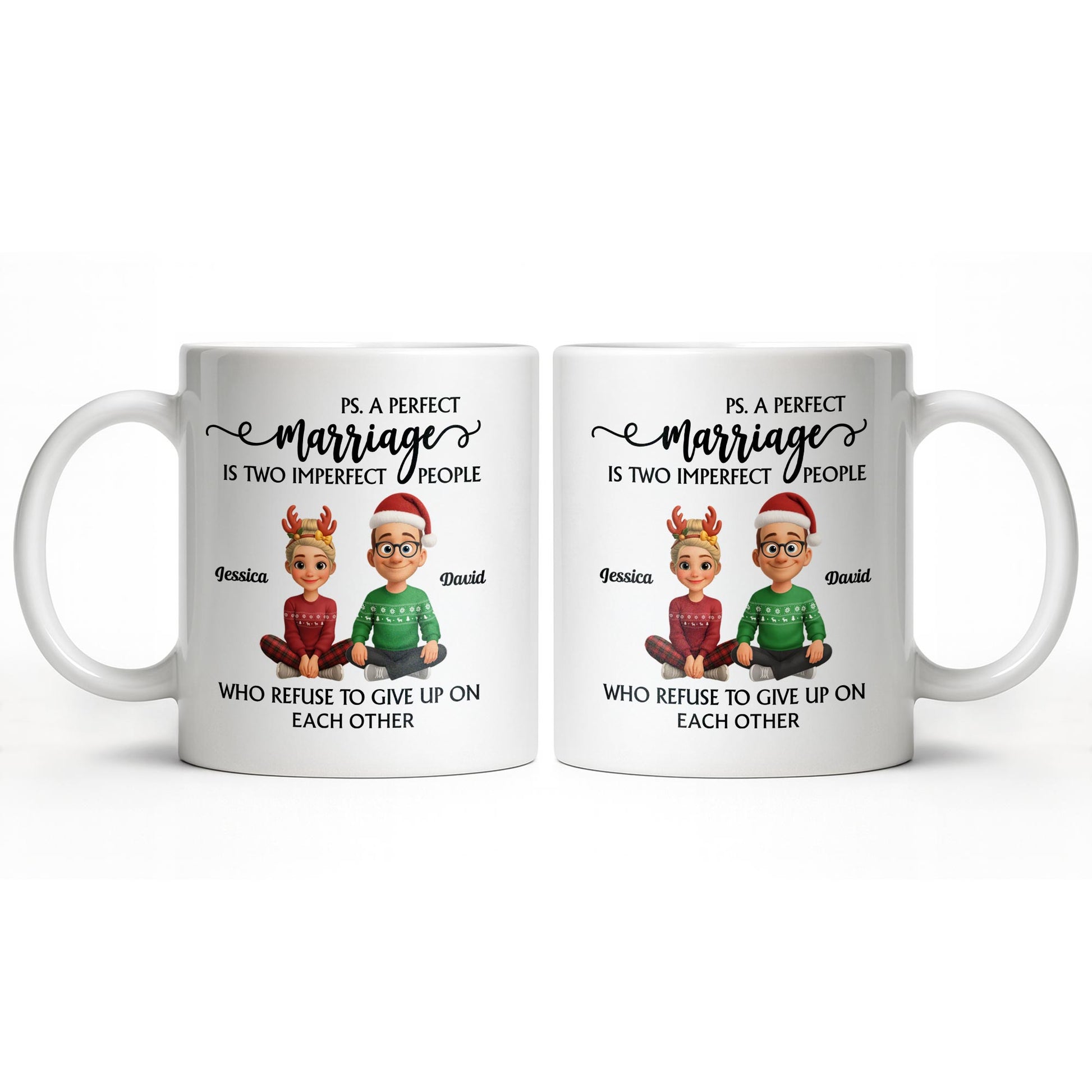 A Perfect Marriage, Cartoon Couple In Christmas Attire - Personalized Custom Coffee Mug - CPL978_MG