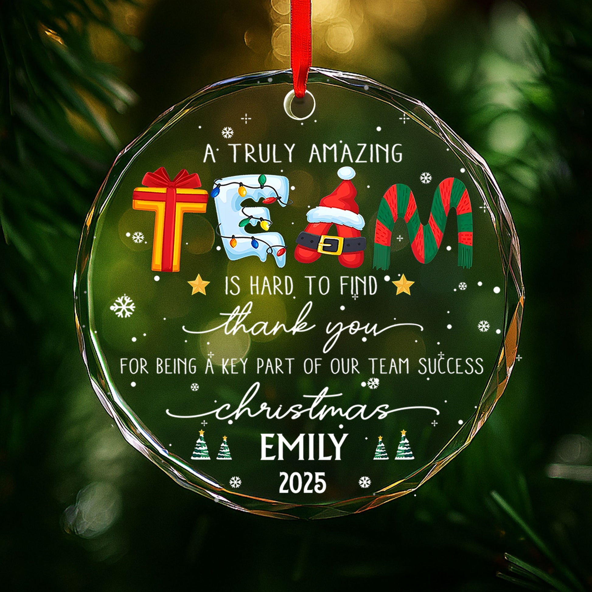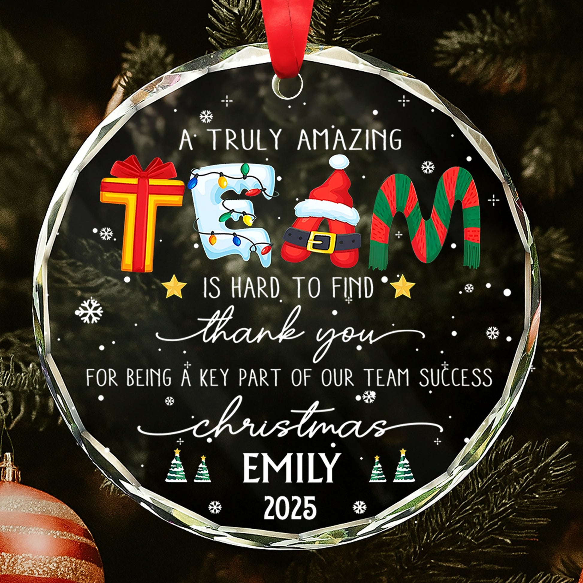 A Truly Amazing Thank You For Our Team, Santa And Gifts, Personalized Glass Ornament, Gift For Employees And Co-Workers
