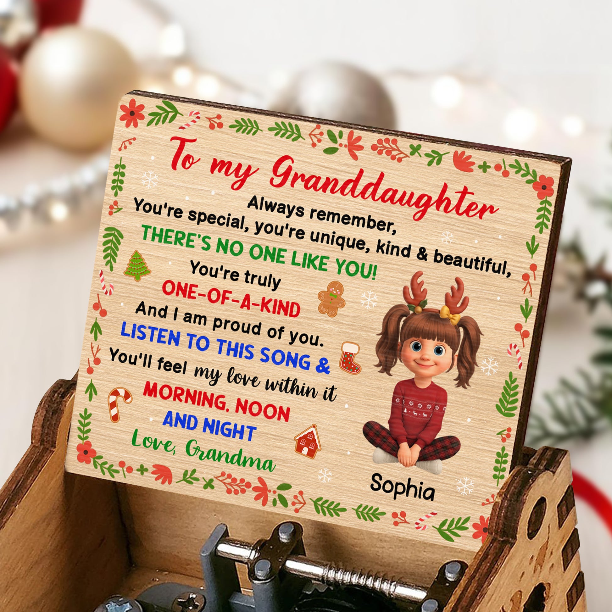 Always Remember, You're Special And Unique, Christmas Elements And Cartoon Girl - Custom Music Box With "We Wish You A Merry Christmas" Tune - GDT411_MZX