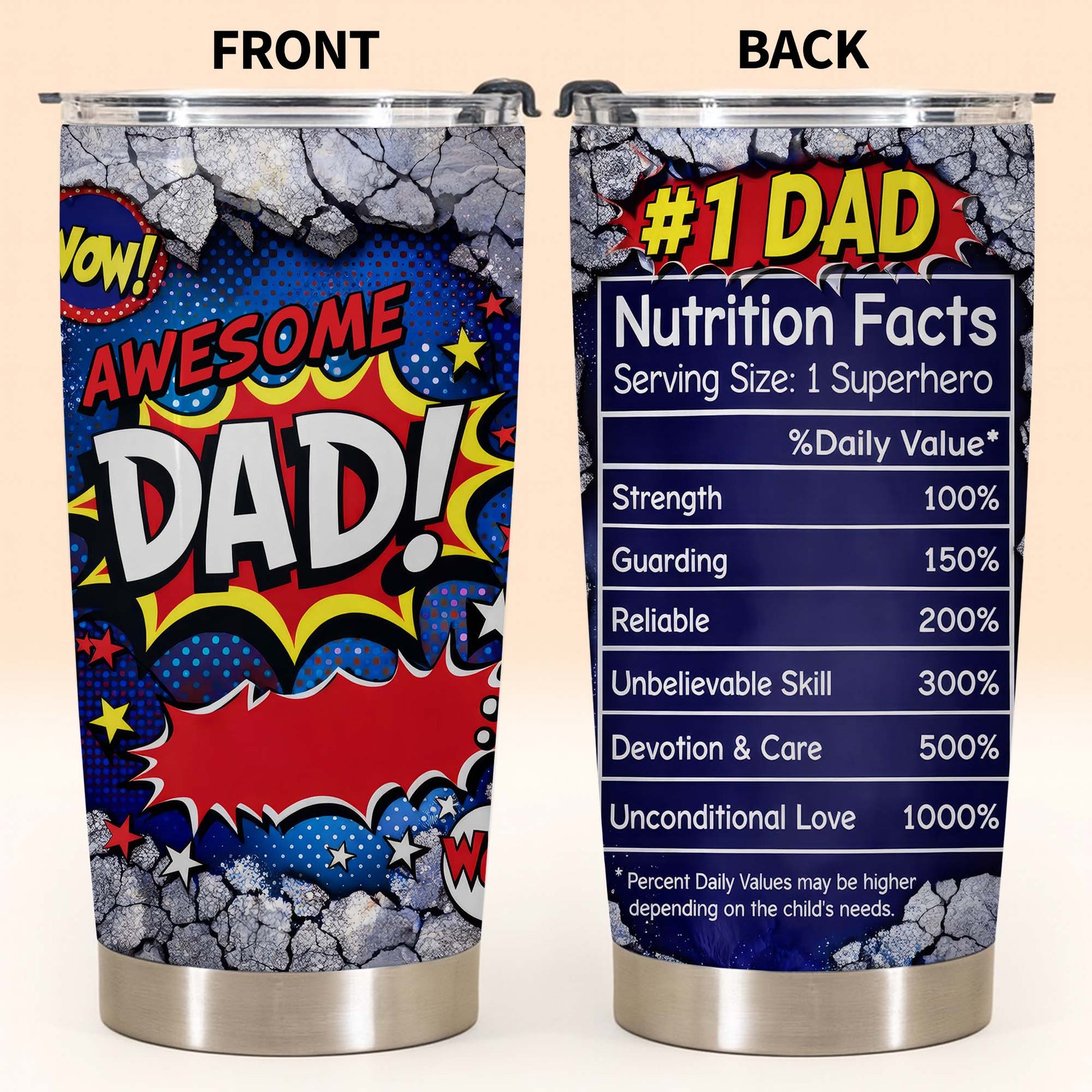 Awesome Dad Number One Nutrition Facts Superhero Comic Stars - Personalized Custom Stainless Steel Tumbler 20oz 30oz - DAD303_TB