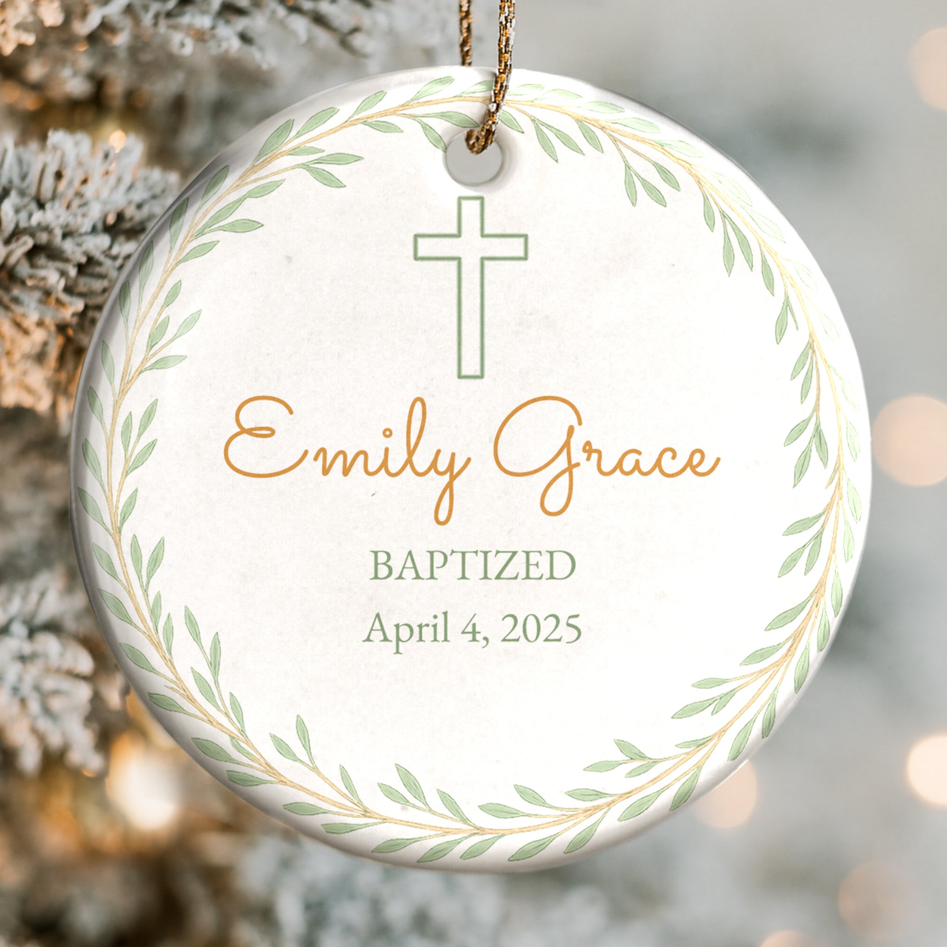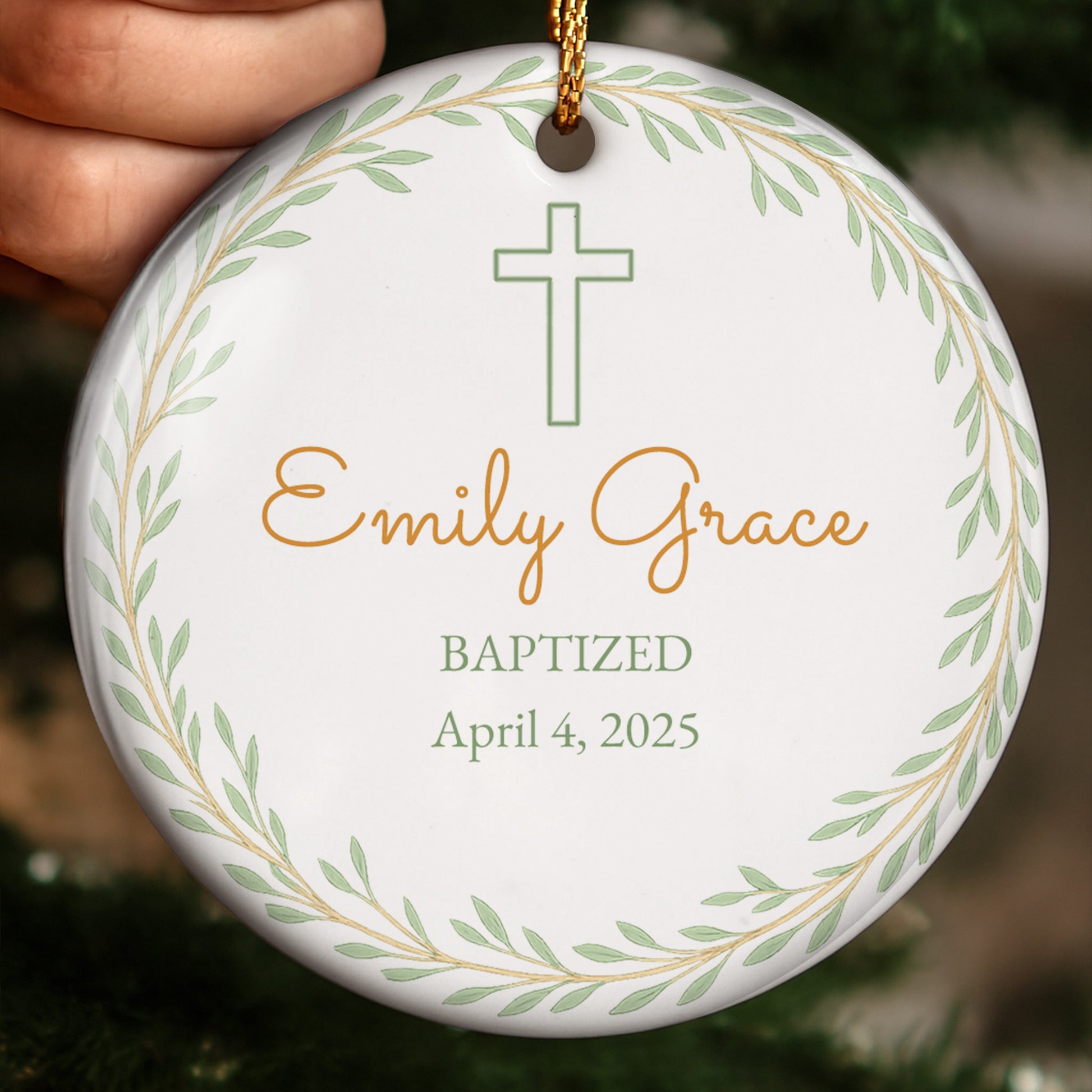 Baptized, Beautiful Keepsake With Cross And Leaves, Ceramic Ornament, Gift For Family and Godparents