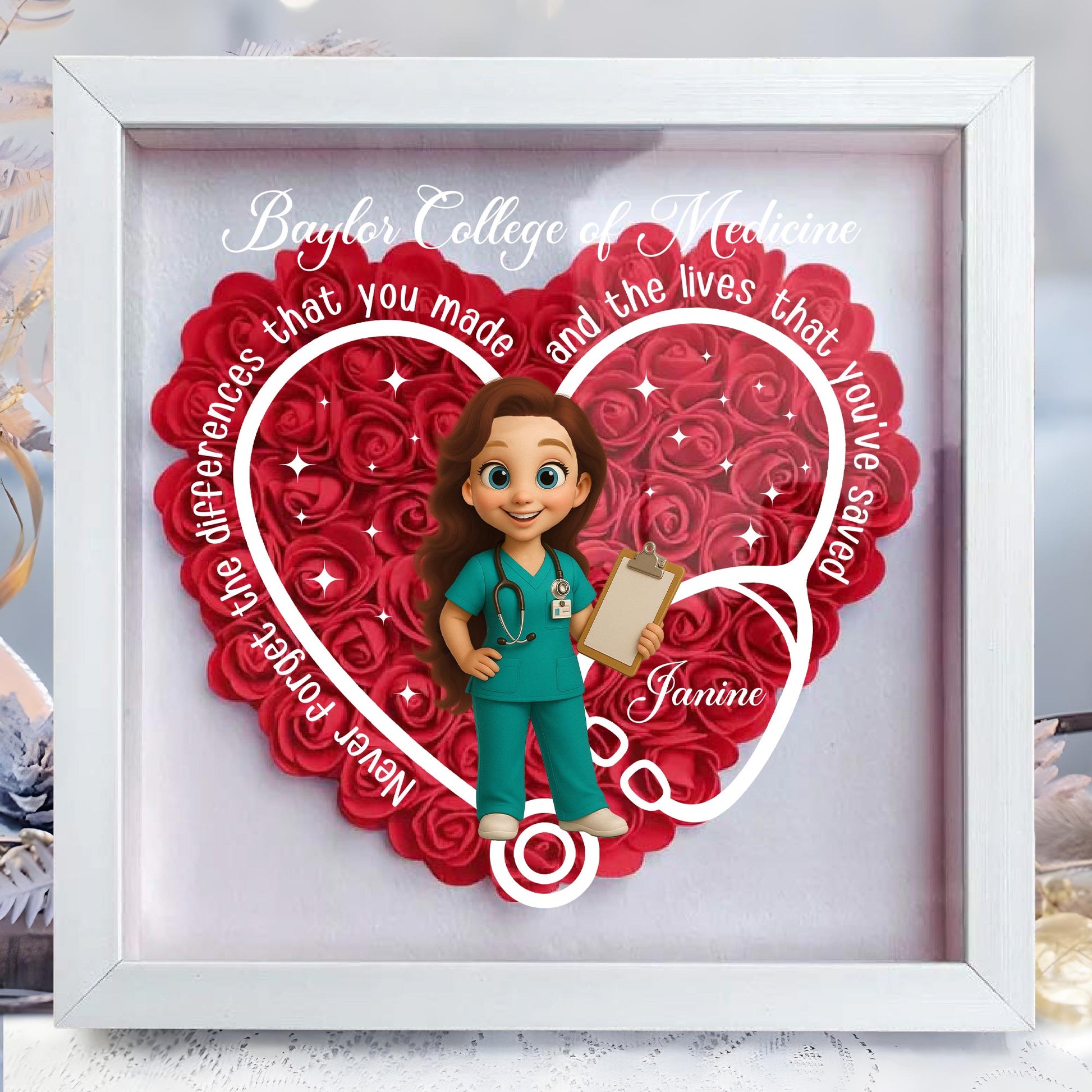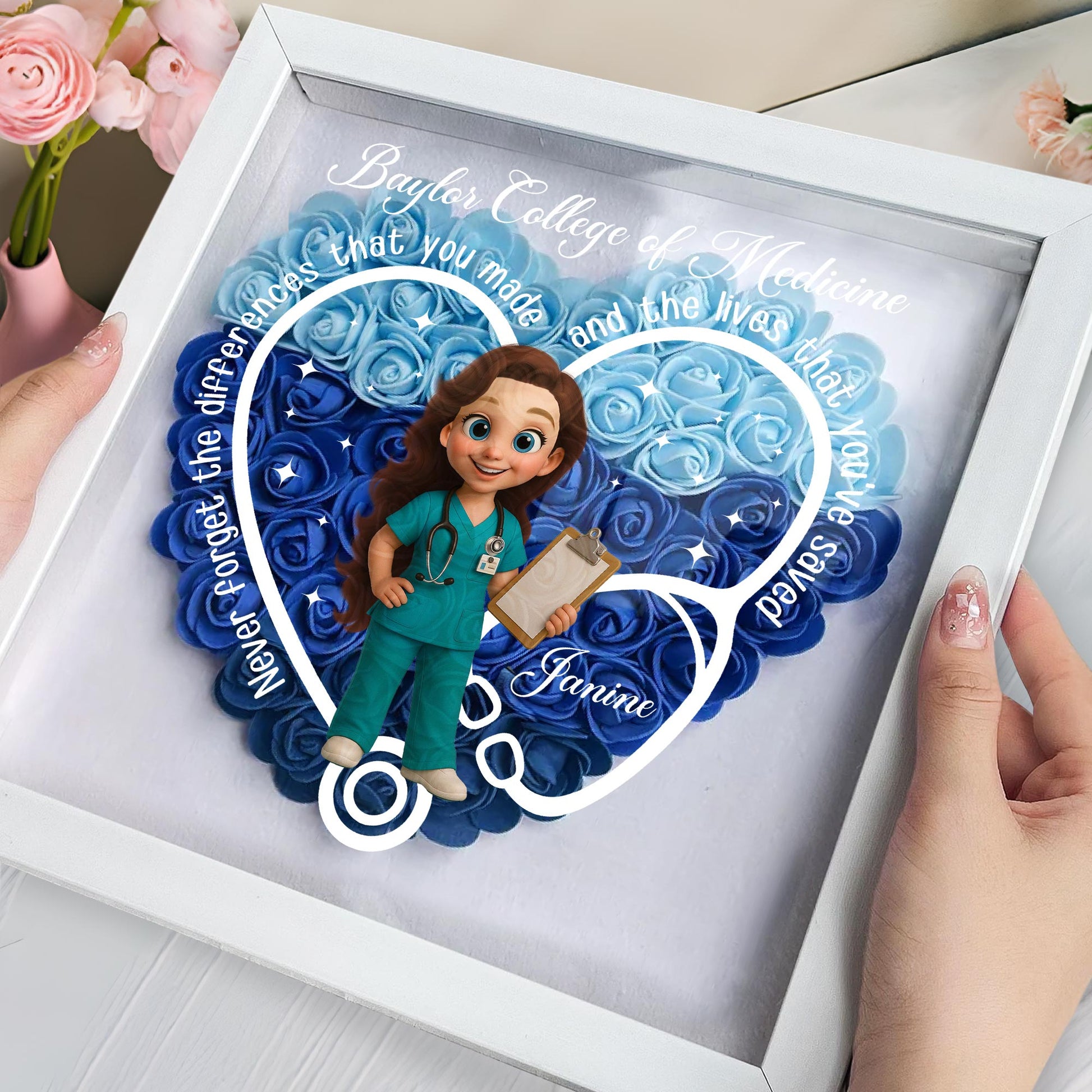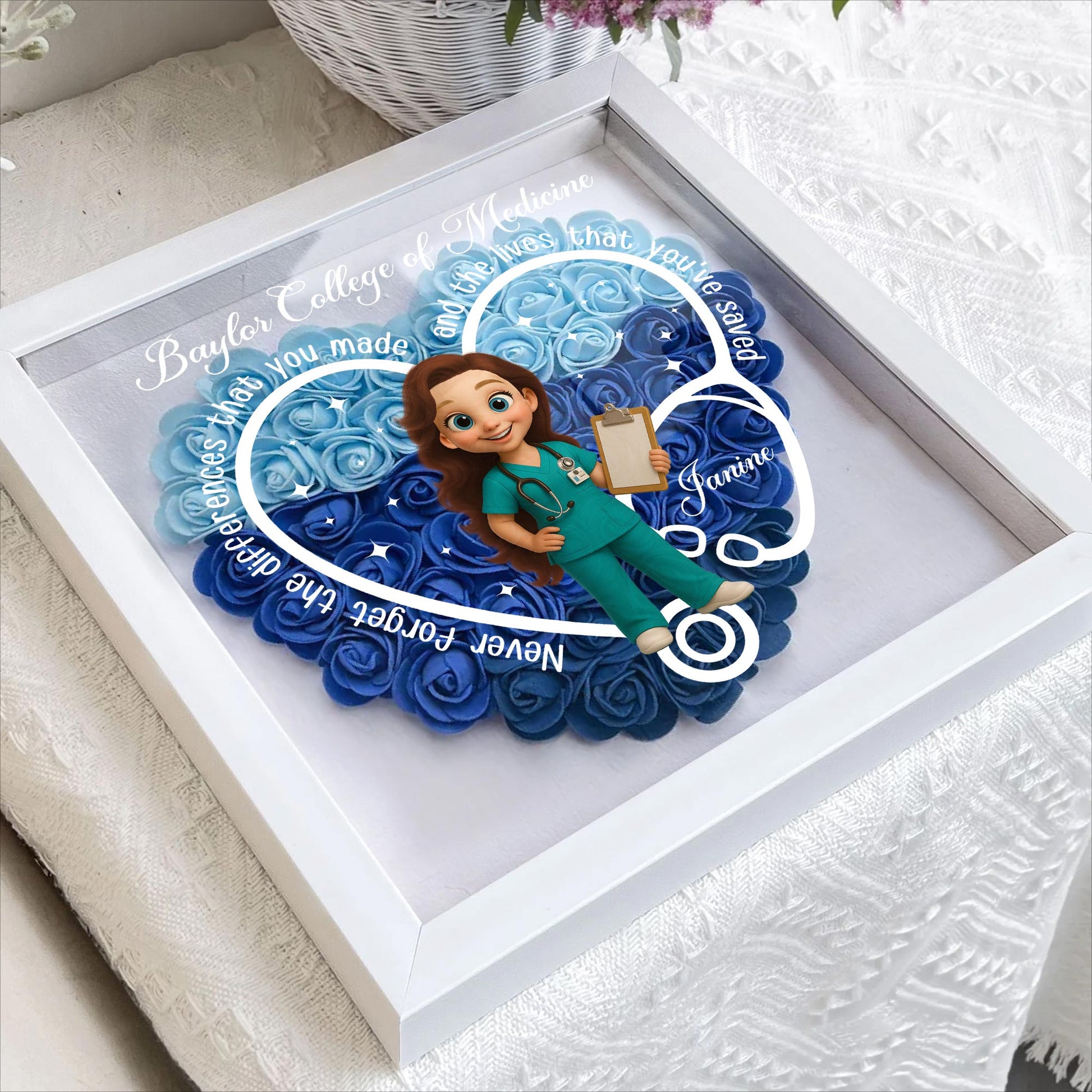 Baylor College of Medicine, The Differences You Made, Personalized Flower Shadow Box, Gift For Medical Professionals