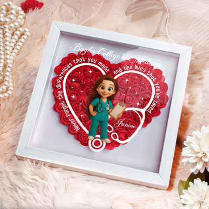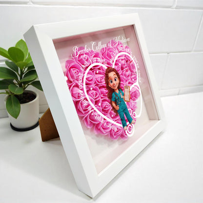 Baylor College of Medicine, La diferencia que hiciste, Rosas y profesionales médicos - Caja de sombras con flores personalizada - NUR003_HESHA