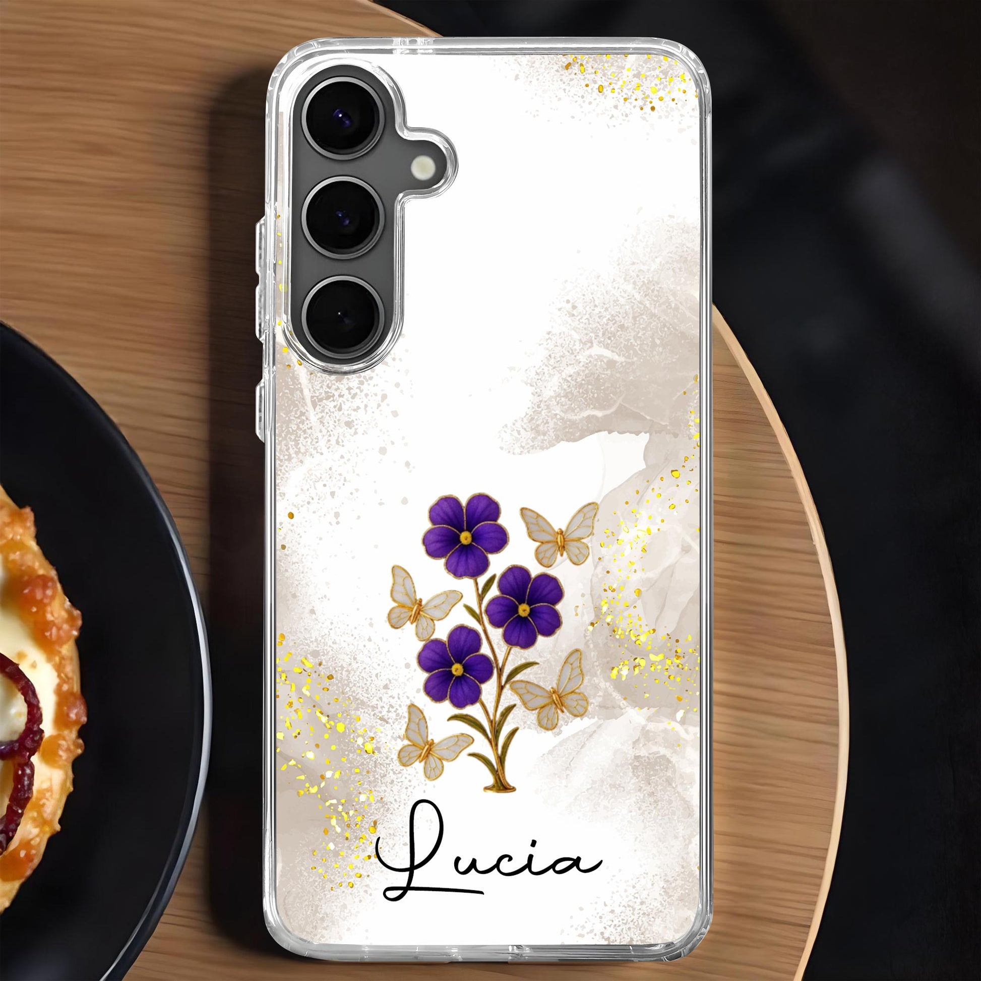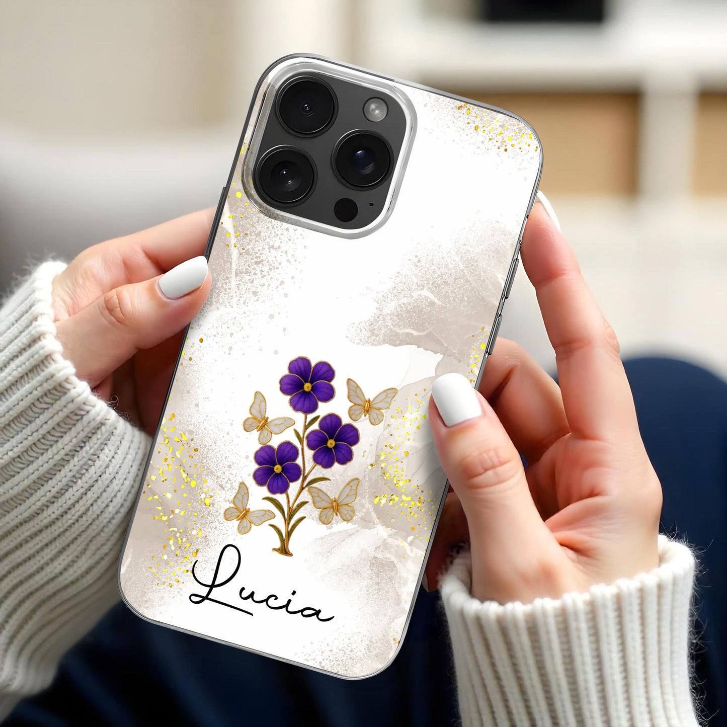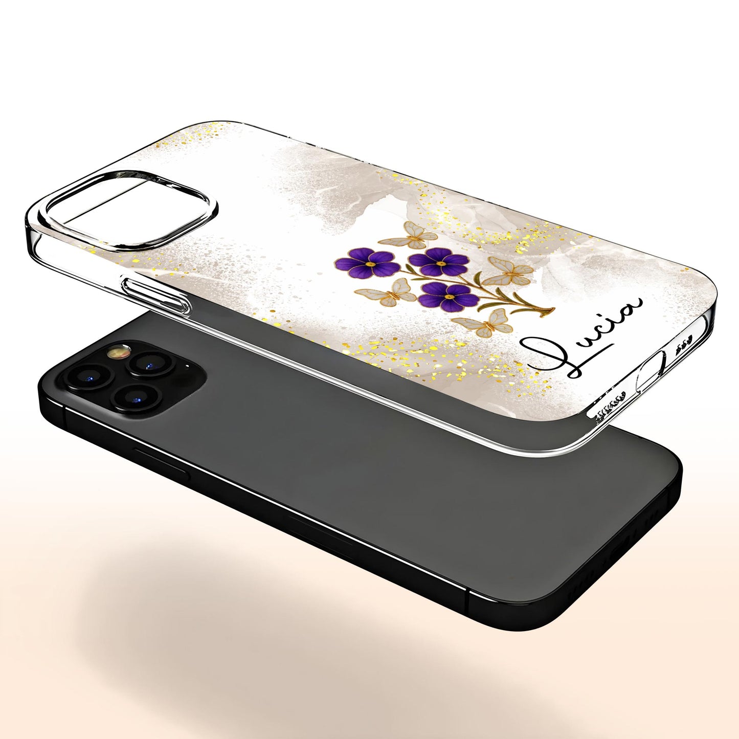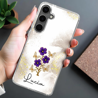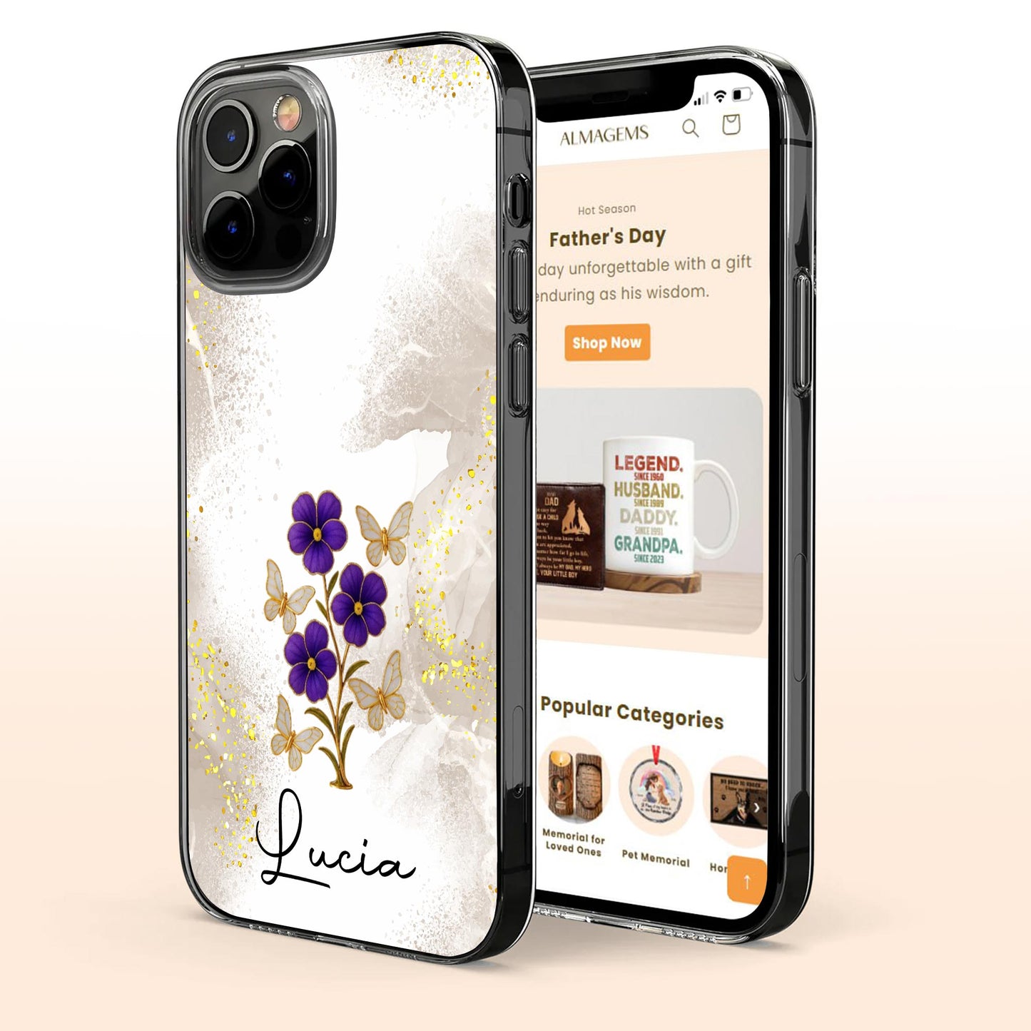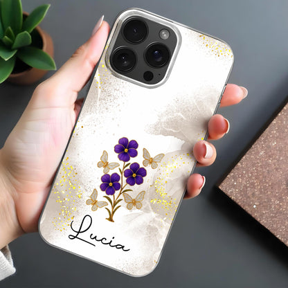 Birth Month Flower and Butterfly Design, Personalized Clear Phone Case, Gift For Her