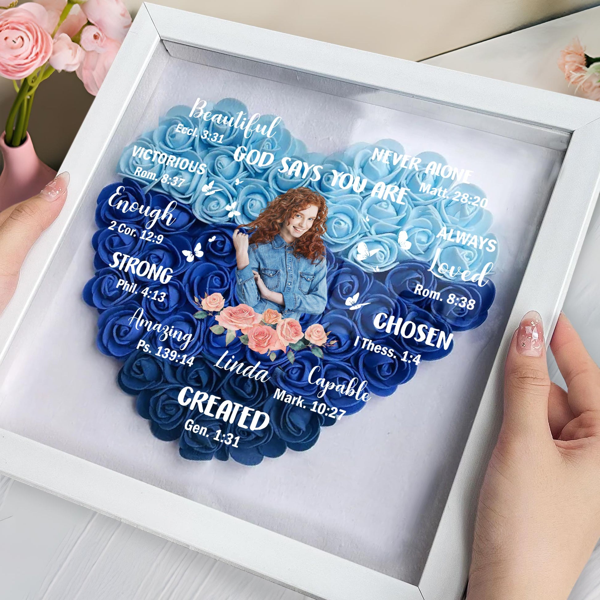 Beautiful, God Say You Are Victorious, Personalized Flower Shadow Box, Gift For Besties And Daughters