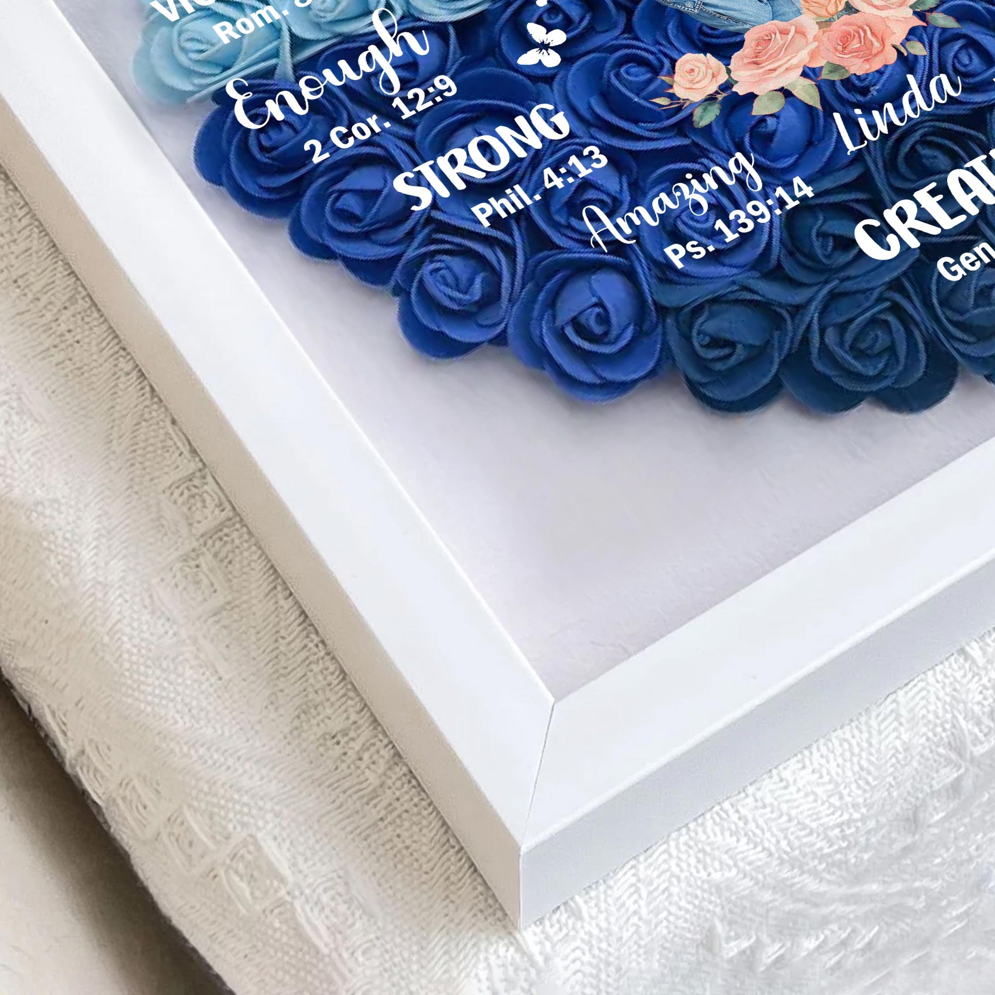 Hermoso, Dios te bendiga, Flores y Corazones - Caja de Sombras de Flores Personalizada - FAM039_HESHA