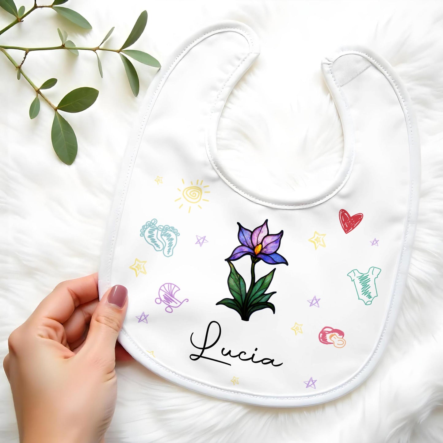 Haga que la hora de la comida sea un poco más especial con este babero de bebé personalizado, donde la comodidad se combina con la ternura personalizada.
