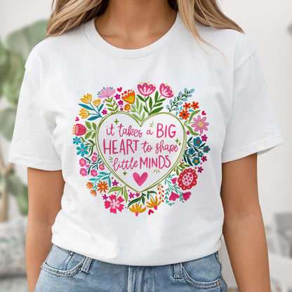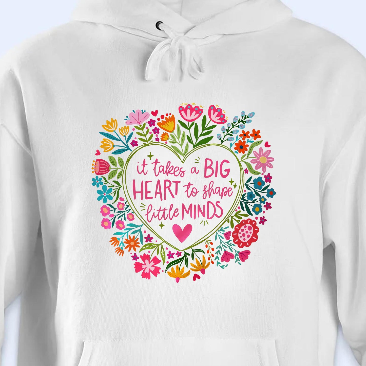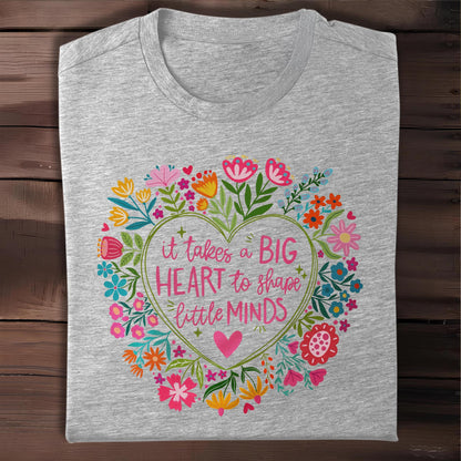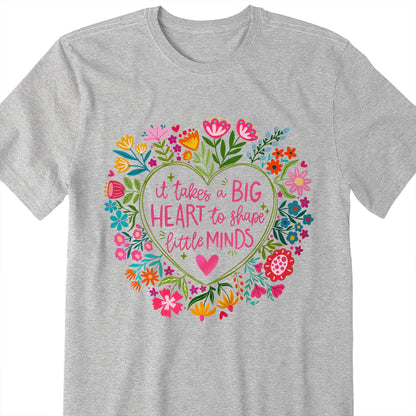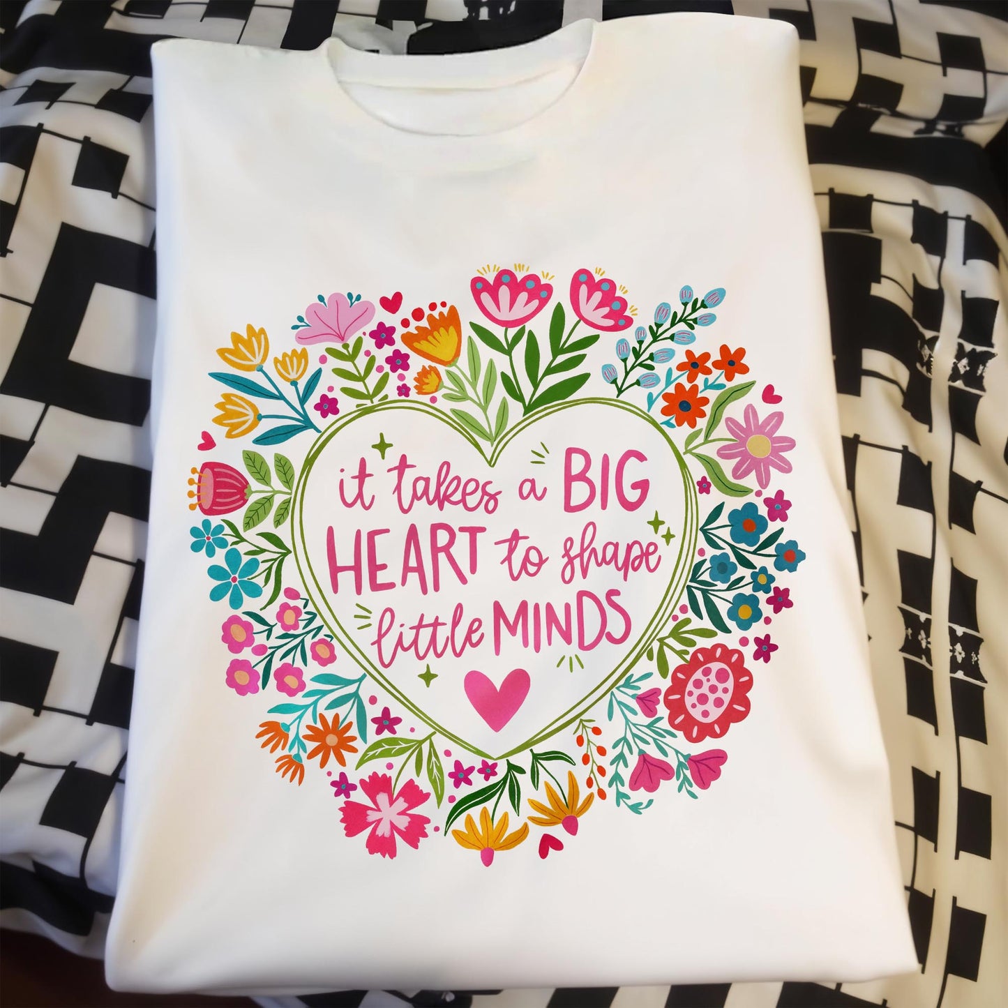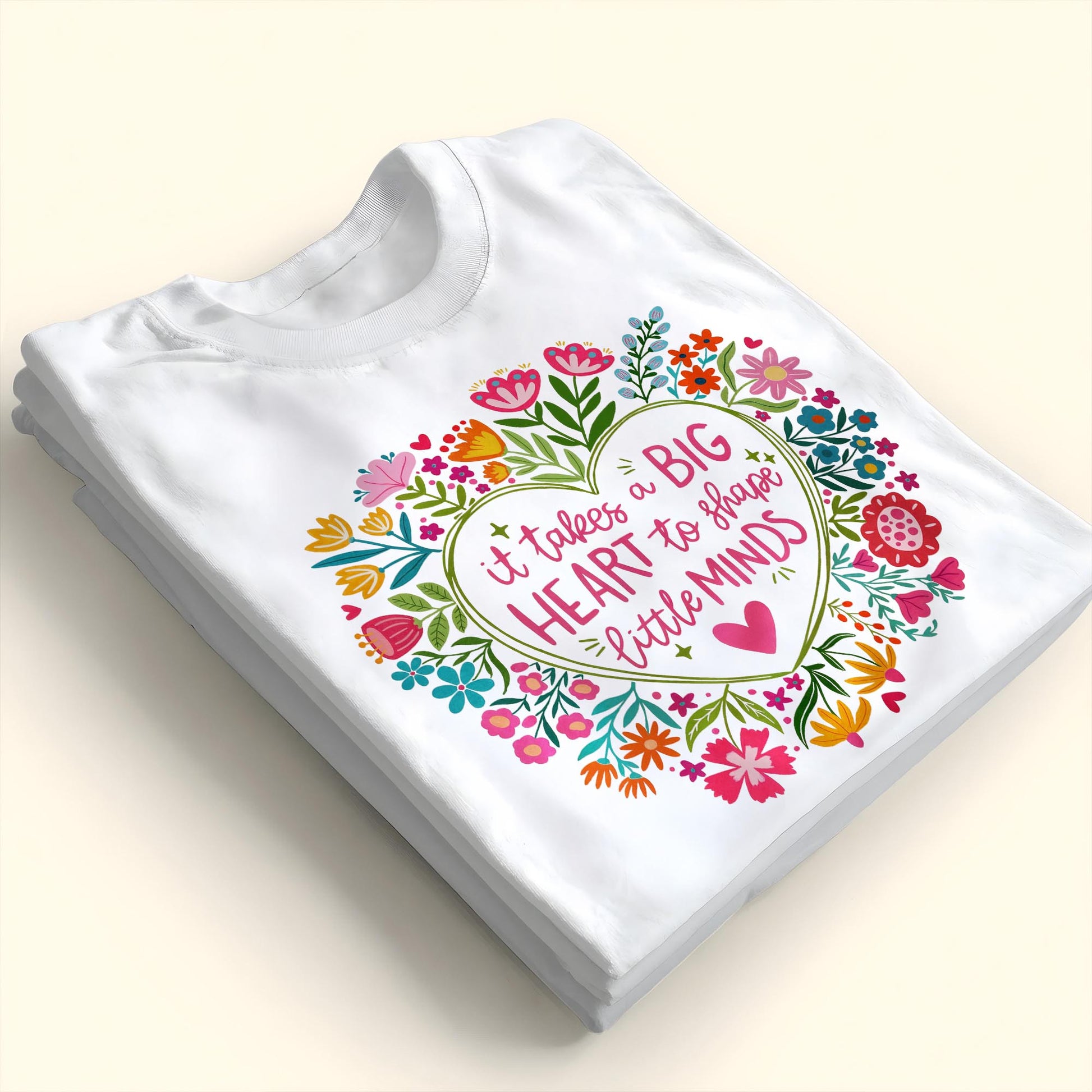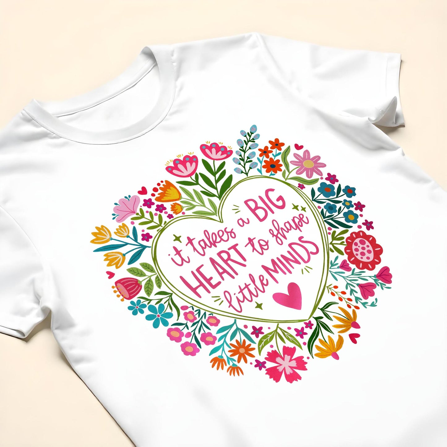 Big Heart To Shape Little Minds With Flowers, Custom T-shirt, Gift For Teachers