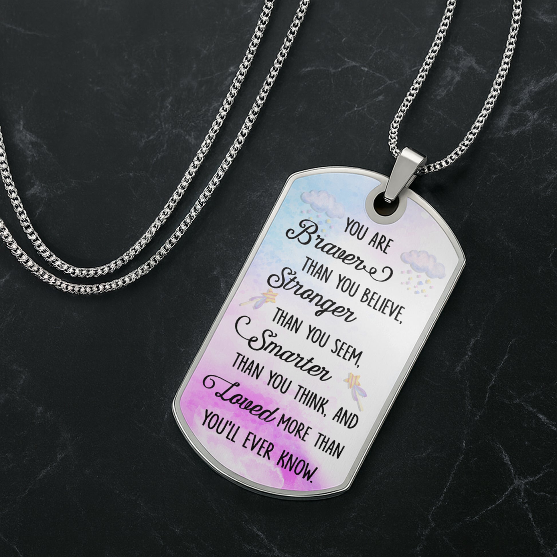 Braver Than You Believe, Stronger Than You Seem, Smarter Than You Think, Custom Dog Tag Necklace, Gift For Daughter