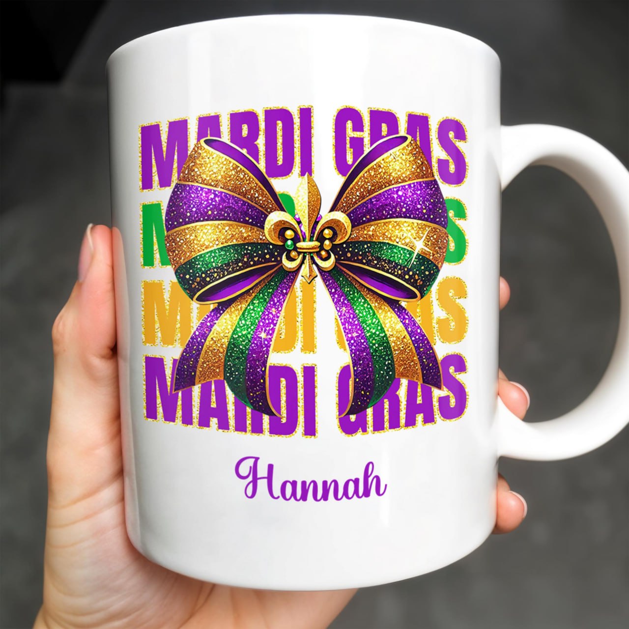 Celebra el Mardi Gras con un lazo festivo - Taza de café personalizada - FAM266_MG