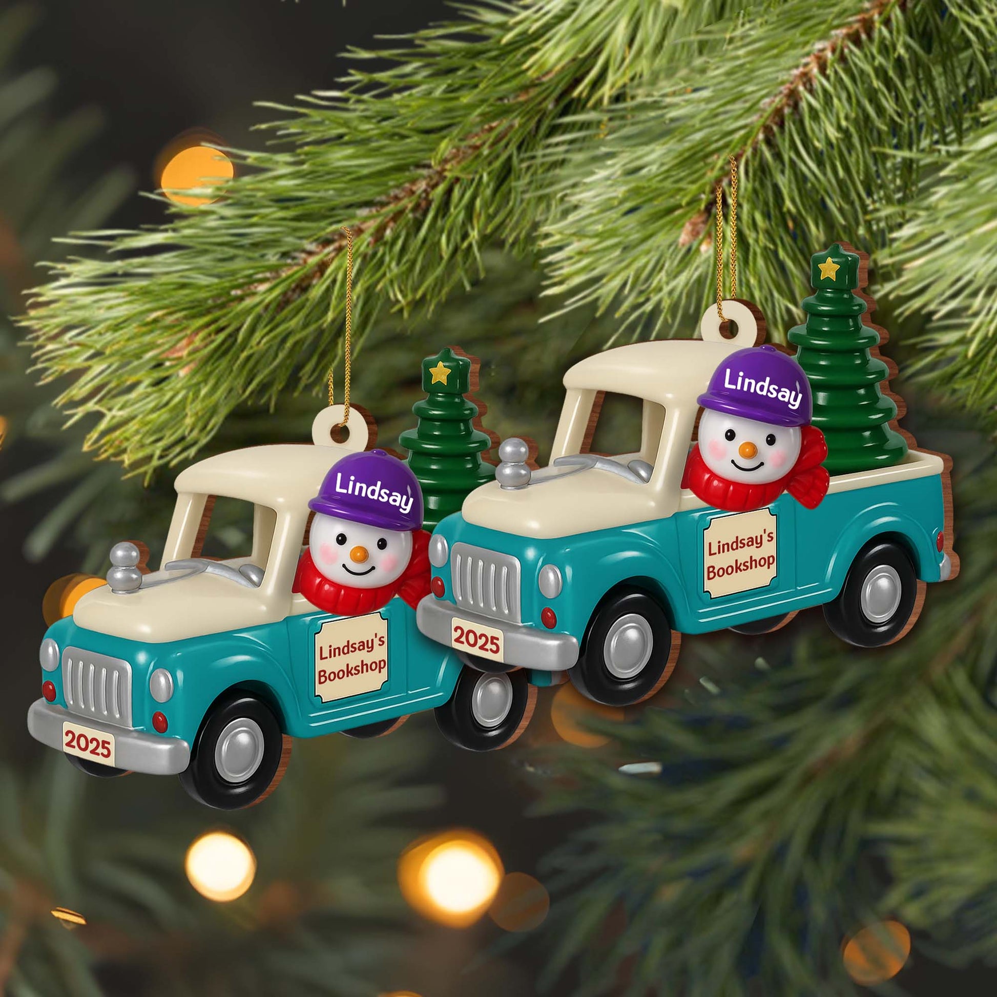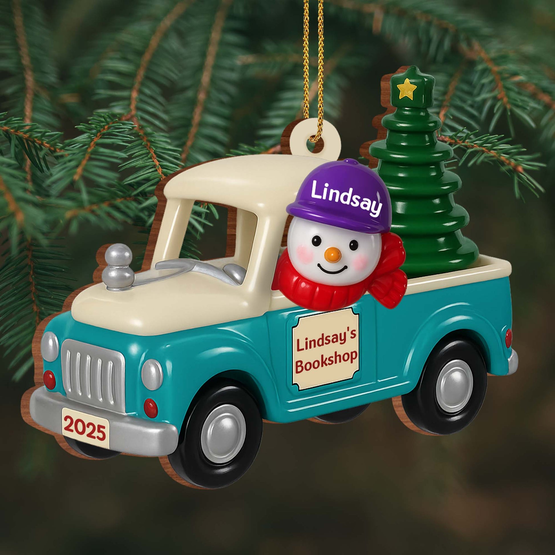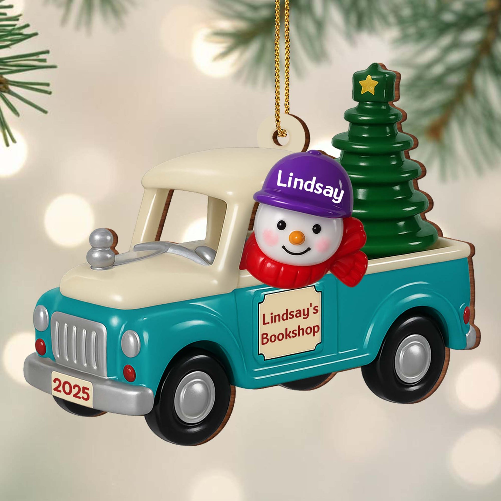 Mensaje: ¡Celebre la magia de los libros y la alegría de la temporada con este encantador adorno de camión vintage!Nota : Debido a las diferencias en la configuración del monitor y la iluminación, el color real puede variar ligeramente. Este adorno de madera impreso tiene un efecto 3D que le aporta profundidad y un acabado de primera calidad.