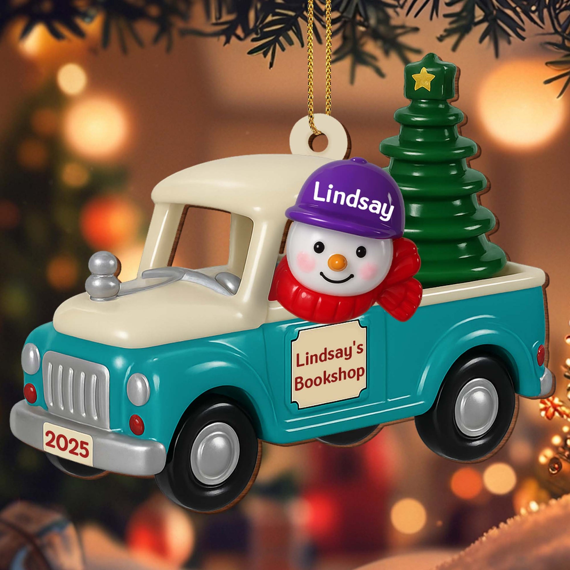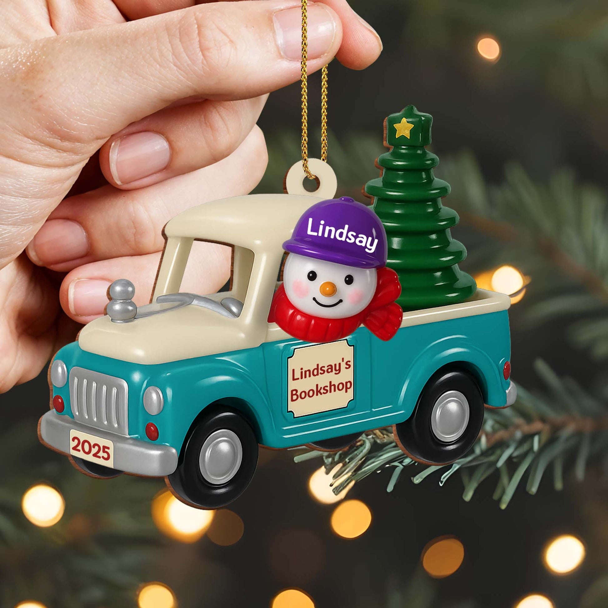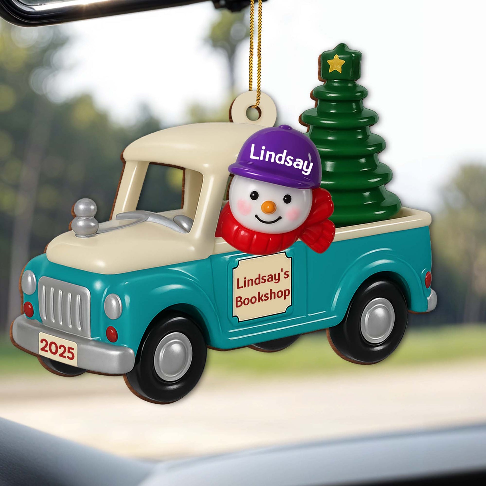 Mensaje: ¡Celebre la magia de los libros y la alegría de la temporada con este encantador adorno de camión vintage!Nota : Debido a las diferencias en la configuración del monitor y la iluminación, el color real puede variar ligeramente. Este adorno de madera impreso tiene un efecto 3D que le aporta profundidad y un acabado de primera calidad.