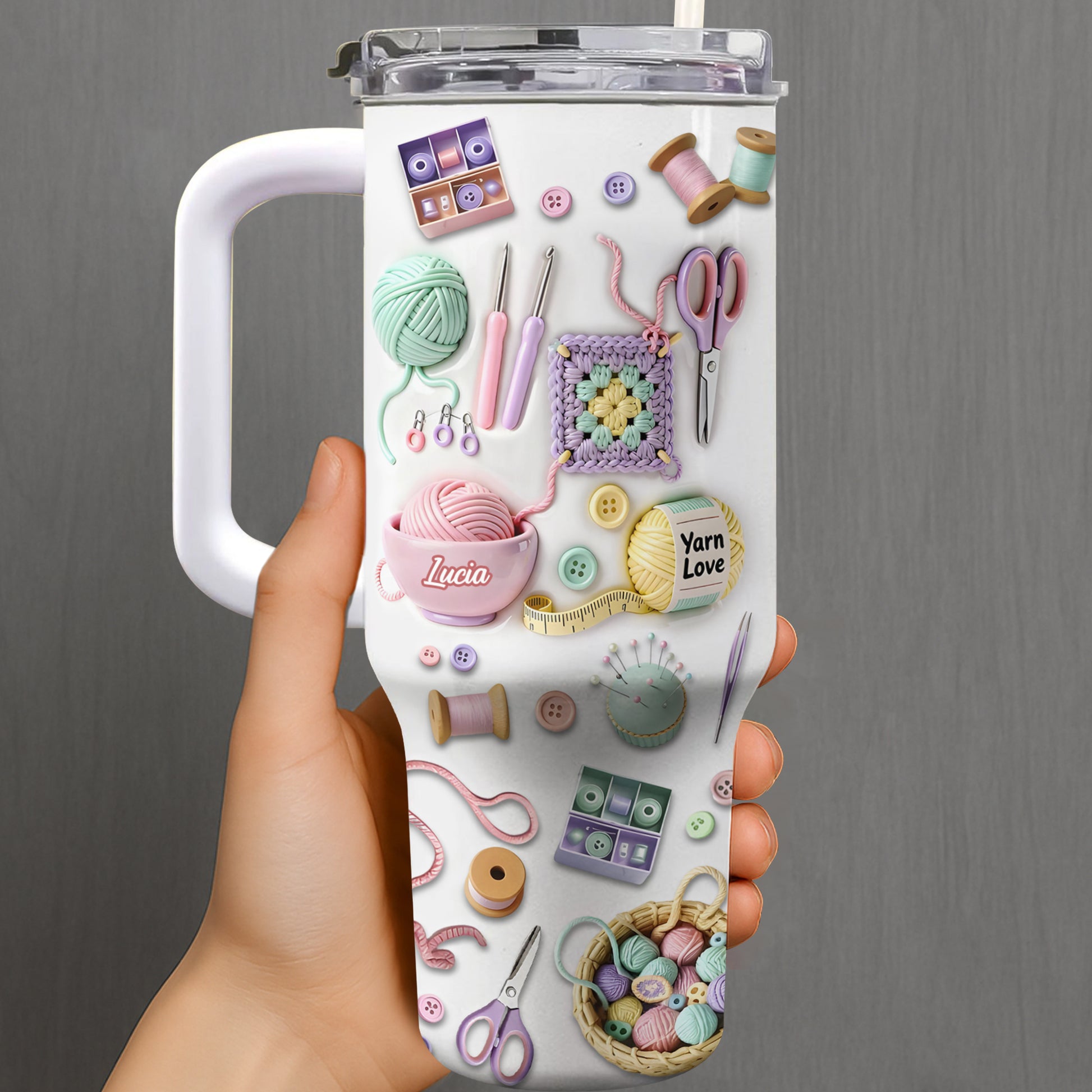 Celebrate Your Creativity With Sewing And Knitting Essentials, Personalized 40oz Tumbler With Straw, Gift For Crafters And DIY Enthusiasts