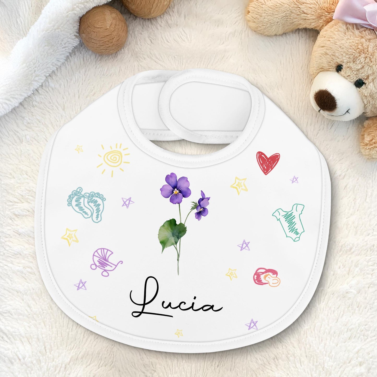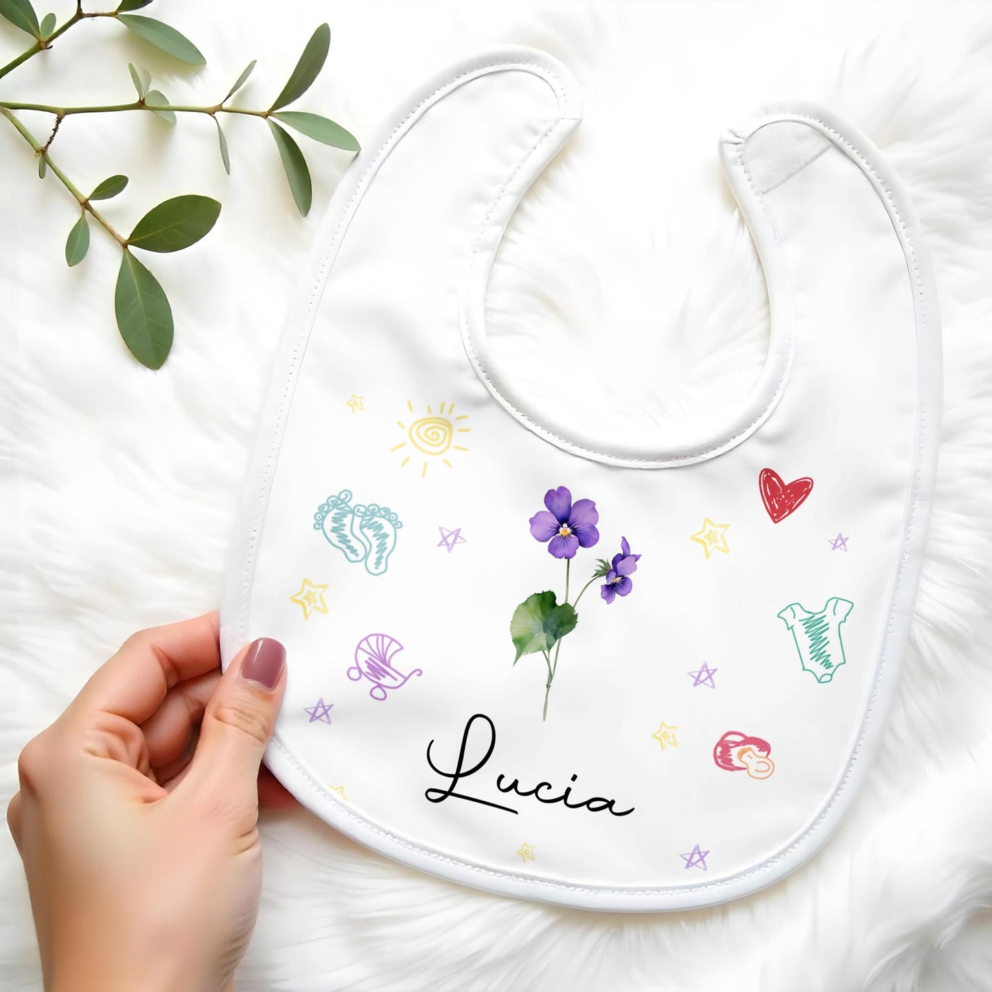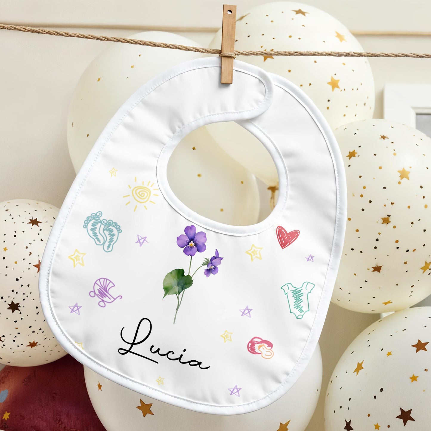 Celebrate Your Little One with Sun, Flower, Heart, Pram, and Stars, Personalized Baby Bib, Gift for New Parents