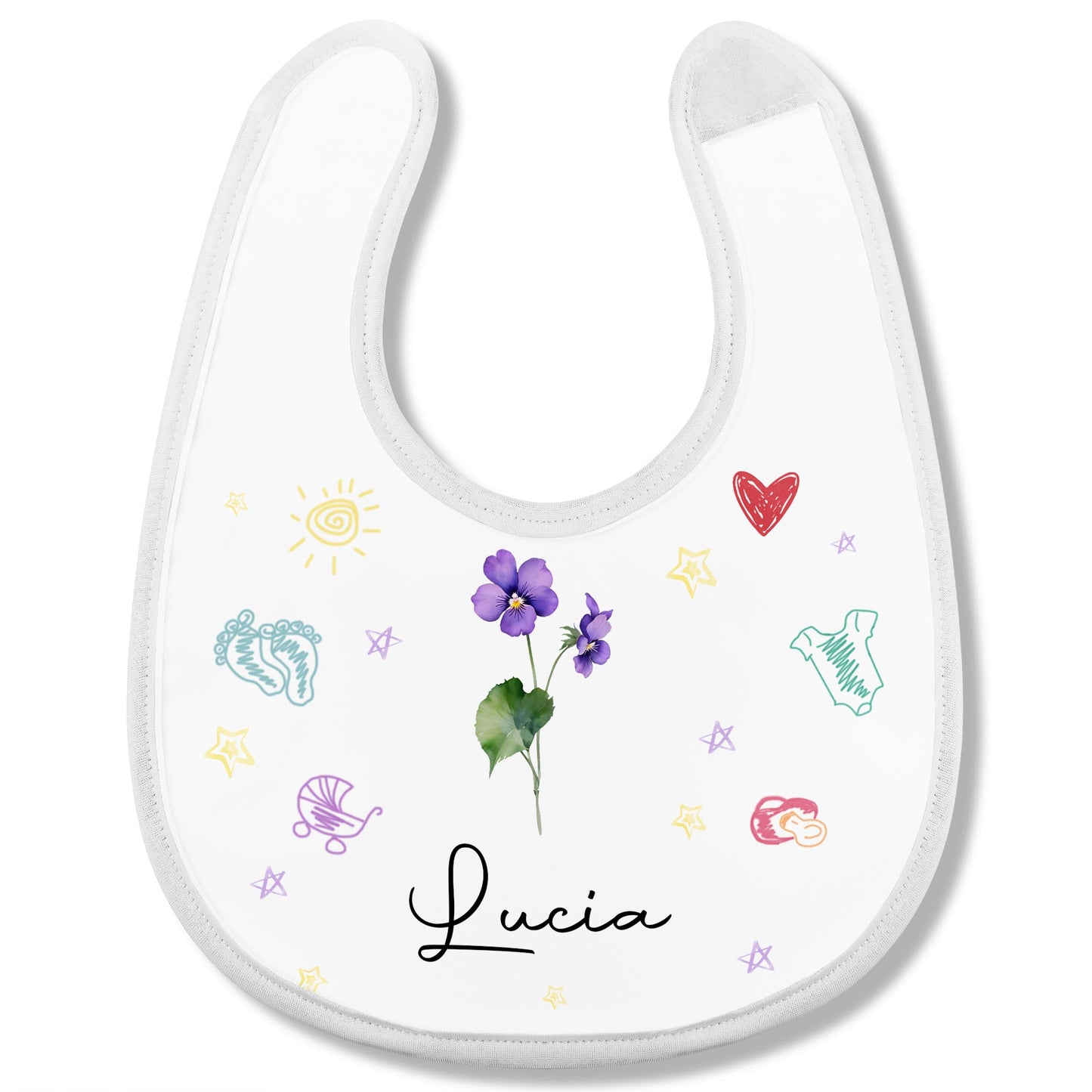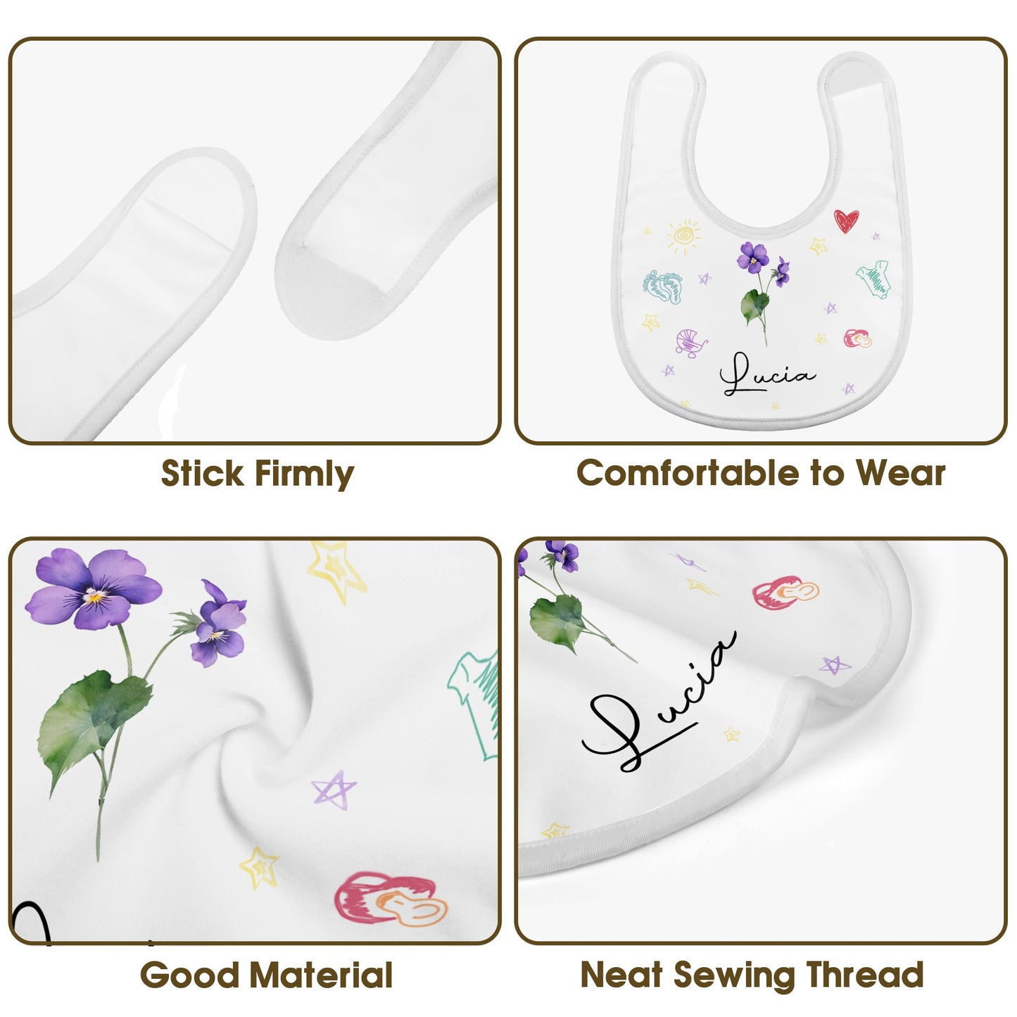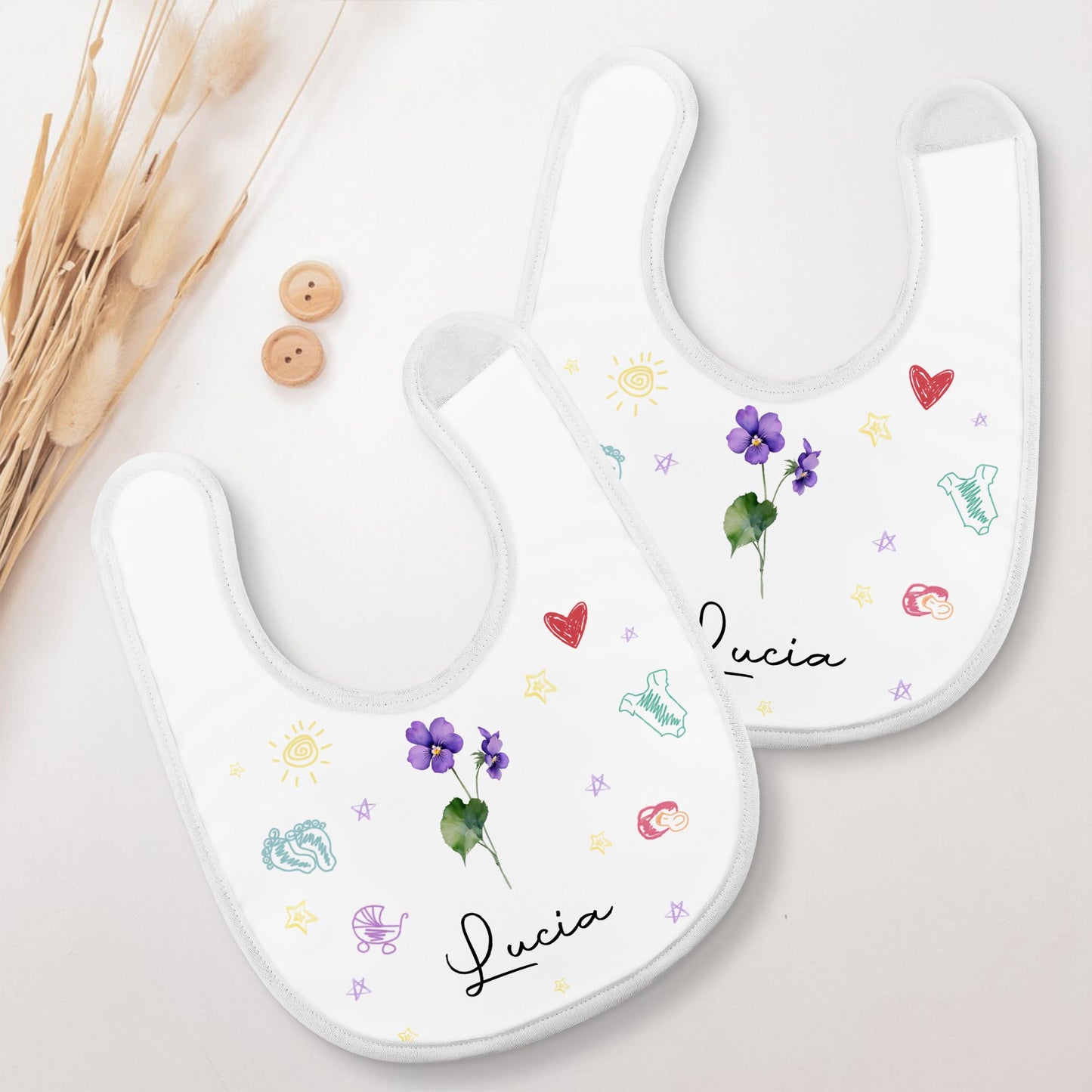 Celebrate Your Little One with Sun, Flower, Heart, Pram, and Stars, Personalized Baby Bib, Gift for New Parents
