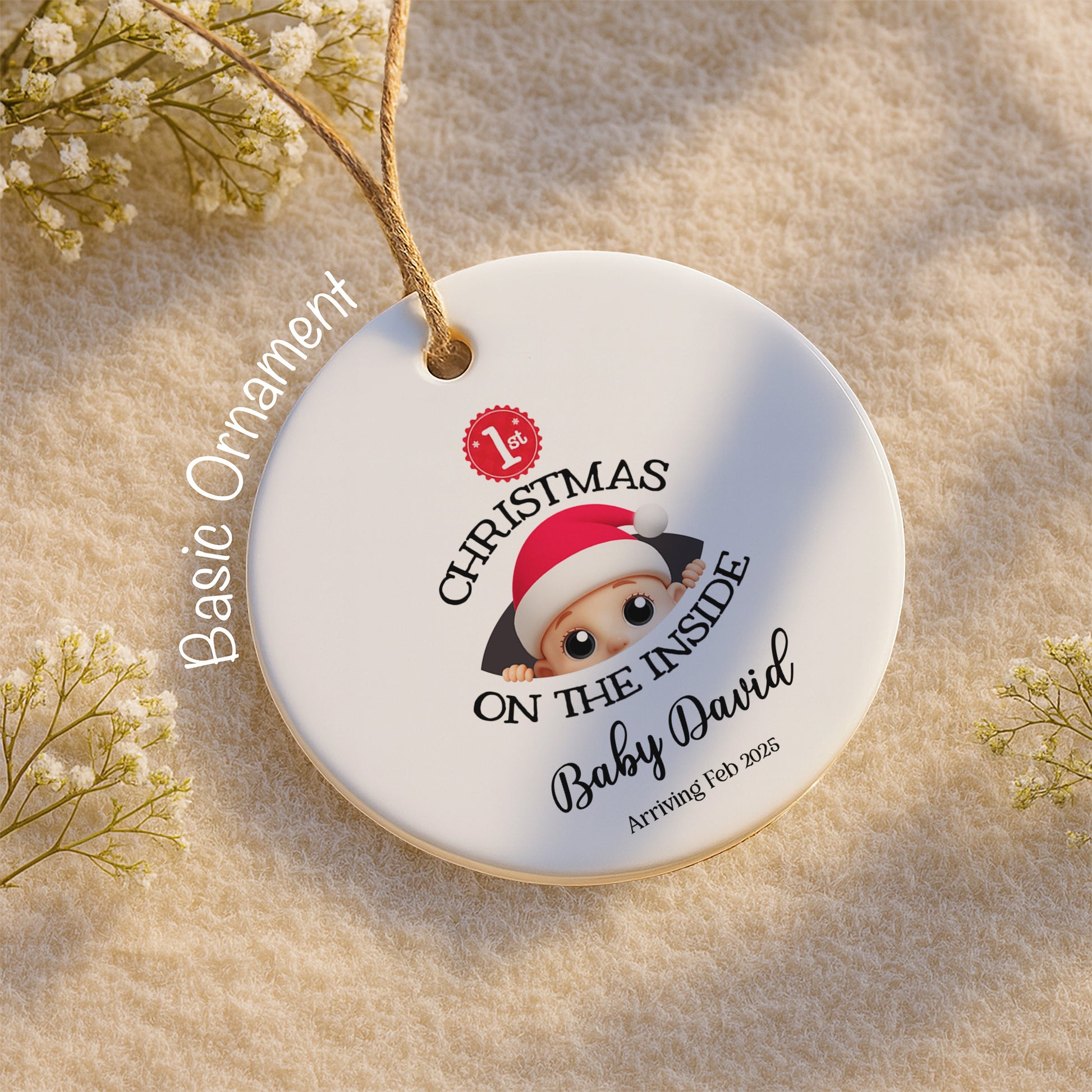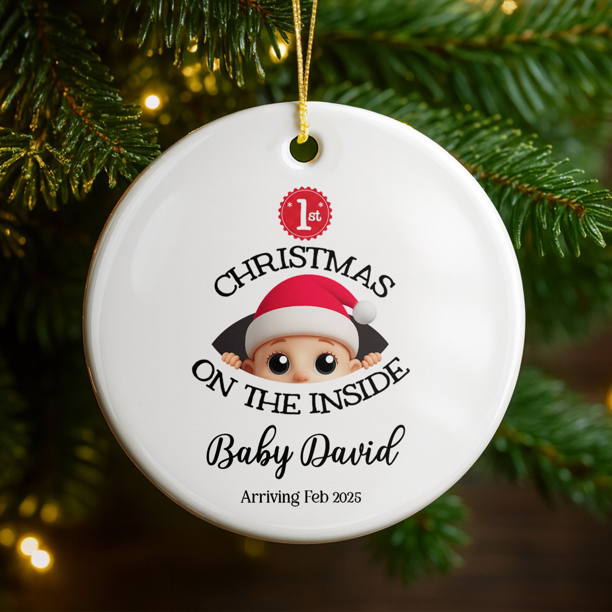 Christmas On The Inside, Baby With Santa Hat, Personalized Ornament, Gift For Expecting Parents