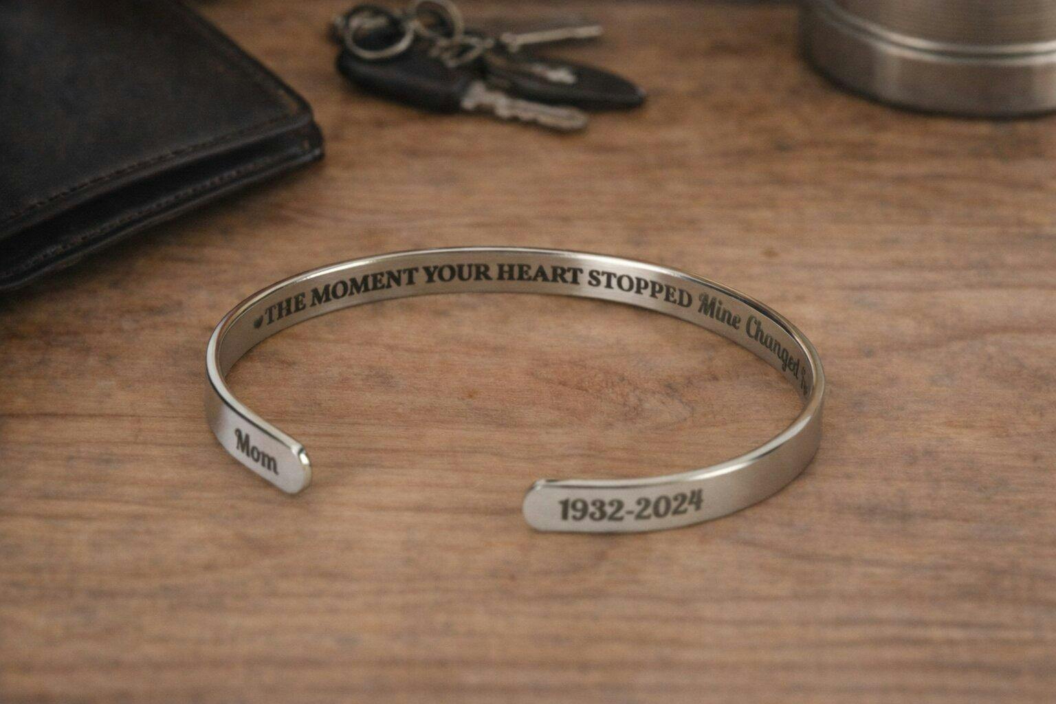 Minimal, meaningful, and made to last—this custom stainless steel bracelet cuff is adjustable for everyday comfort and personalized with your text for a timeless keepsake.