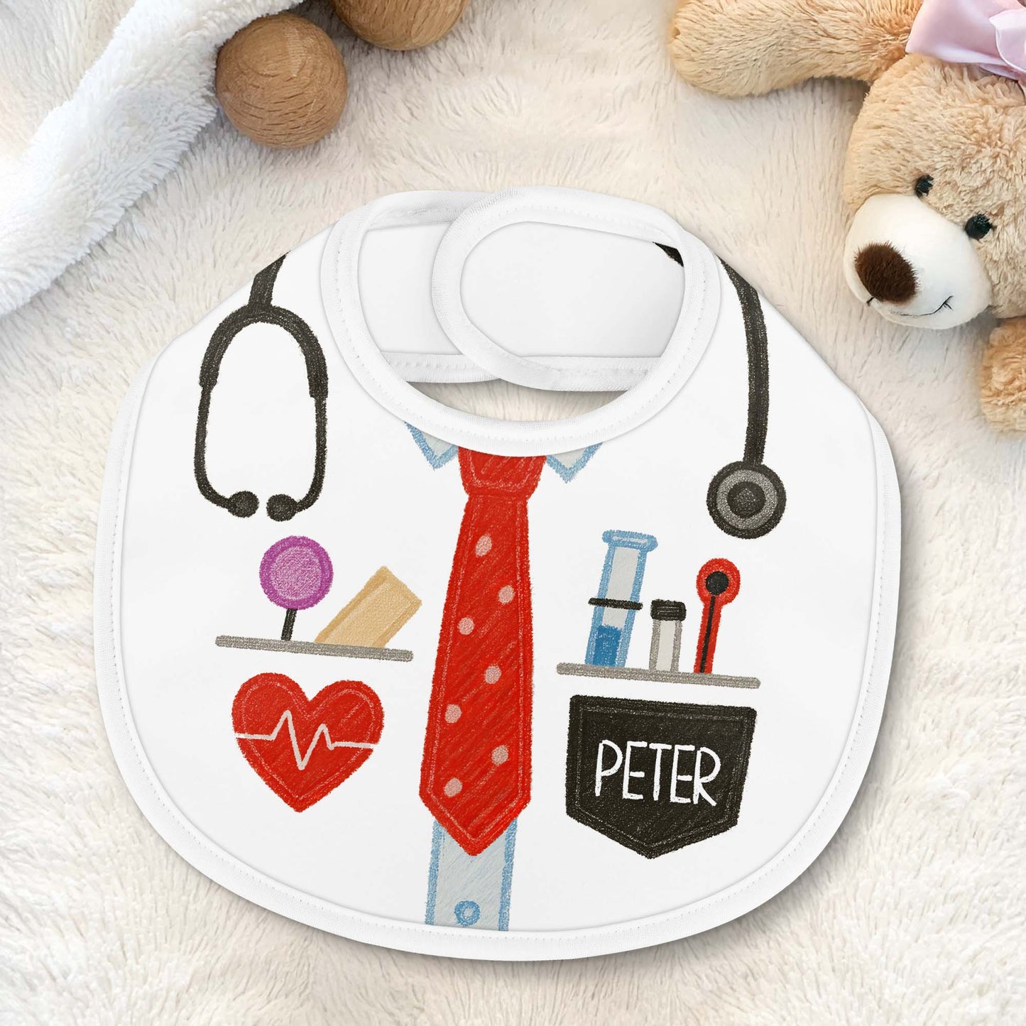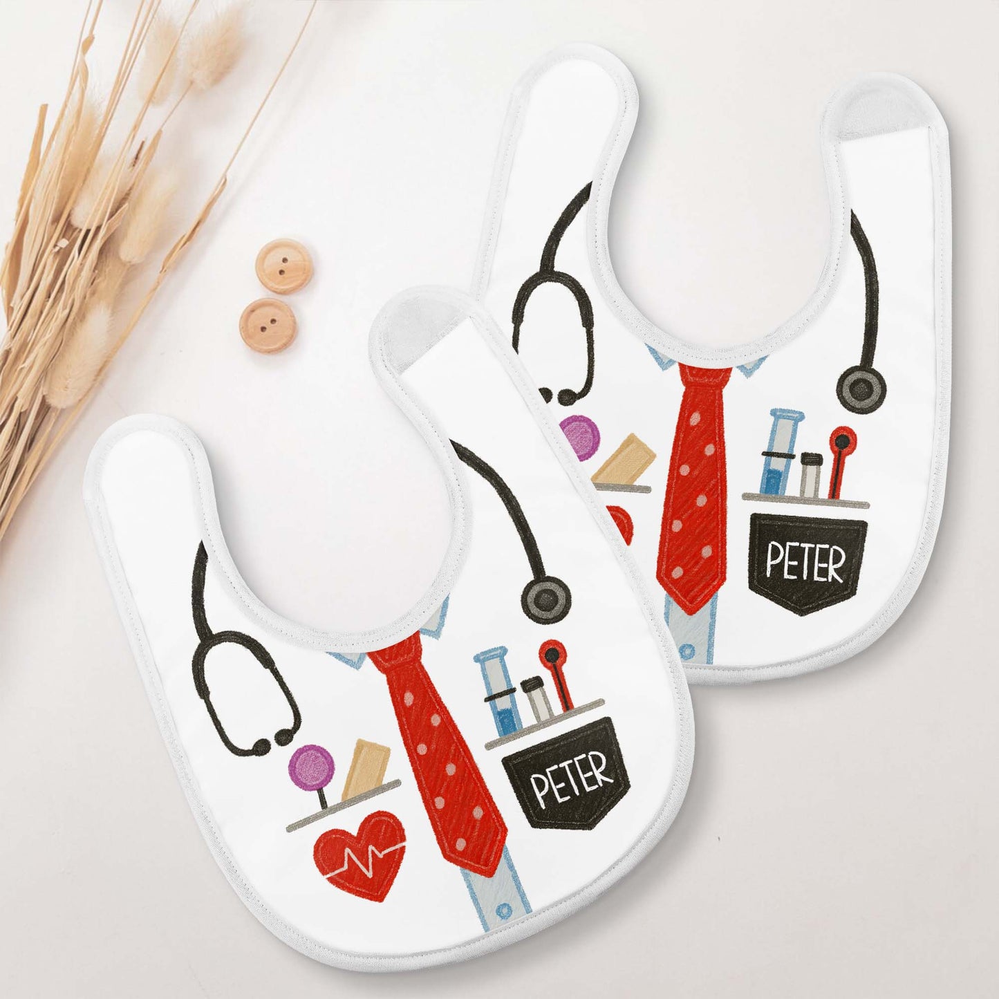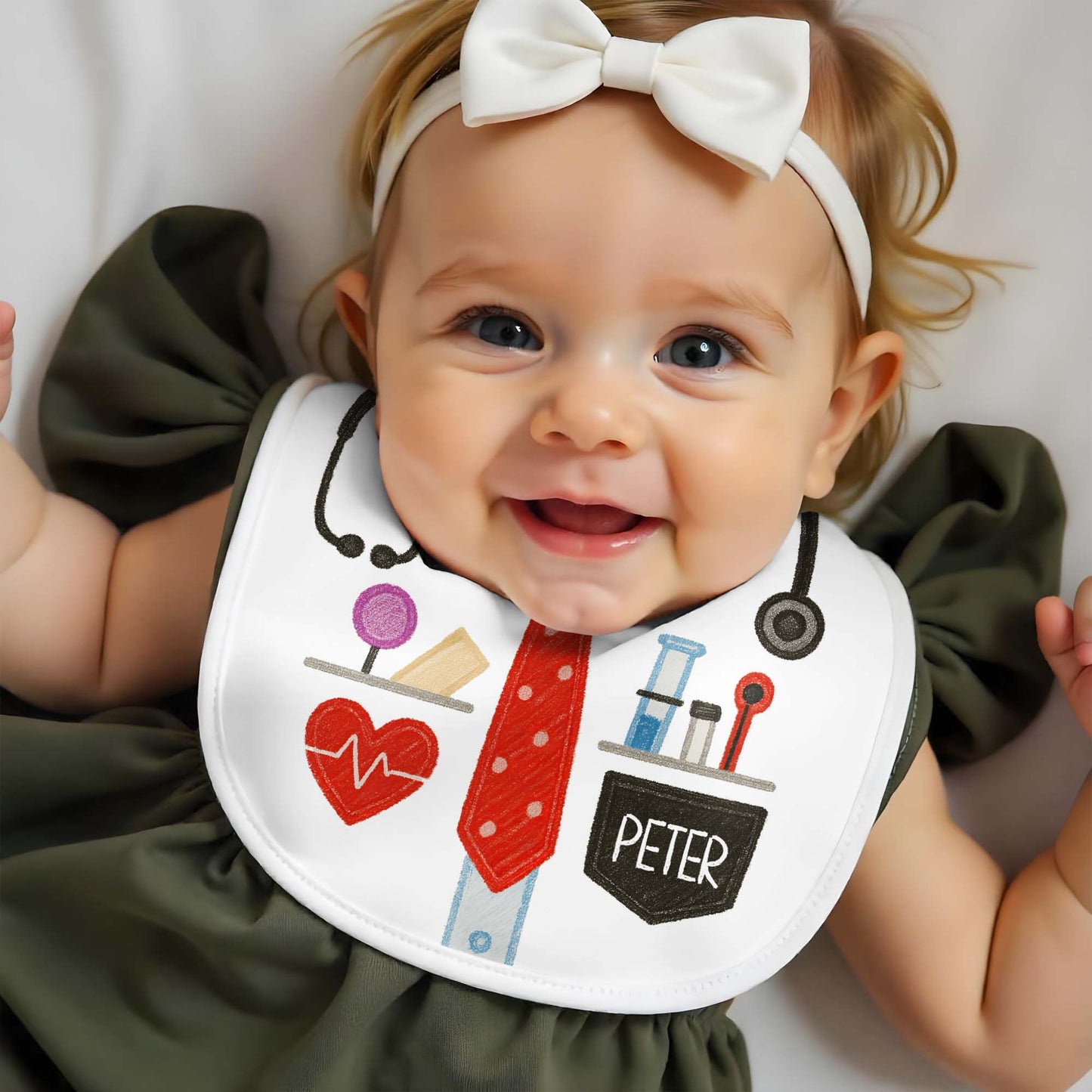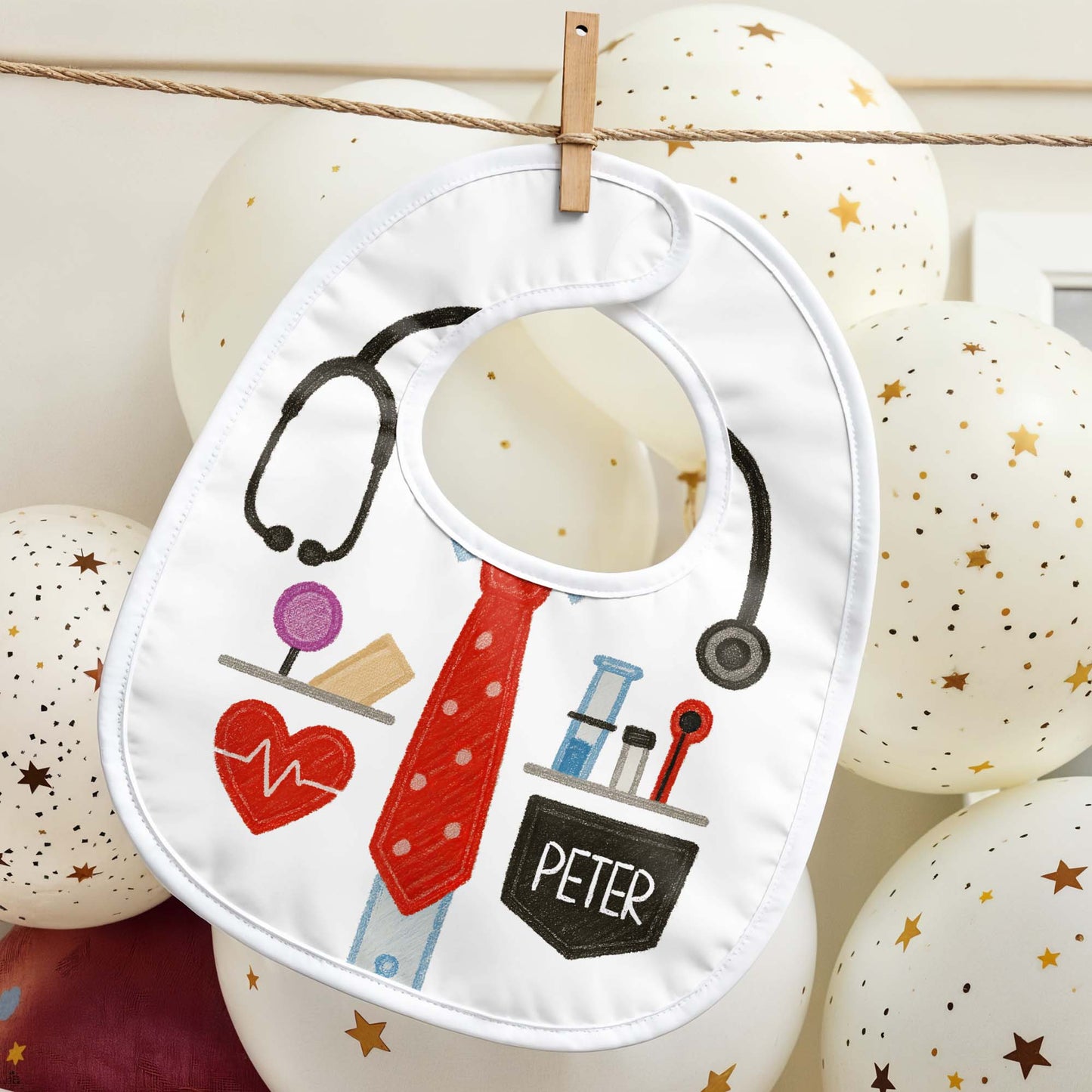 Customizable Baby Bib With Stethoscope, Tie, Heartbeat, Personalized Baby Bib, Gift For New Parents