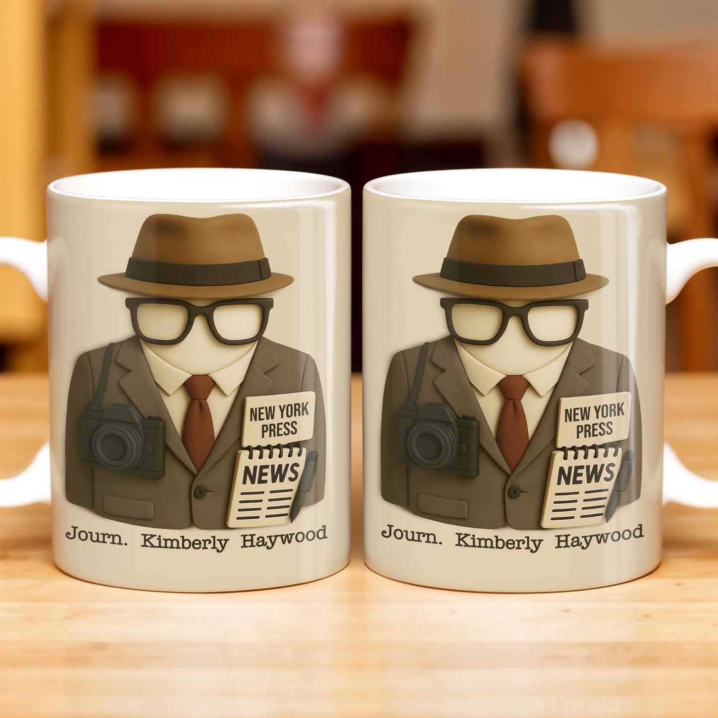 Customizable Journalist, Camera, Press Badge, Hat, Glasses, Personalized Custom Coffee Mug, Gift For Journalists and Media Pros