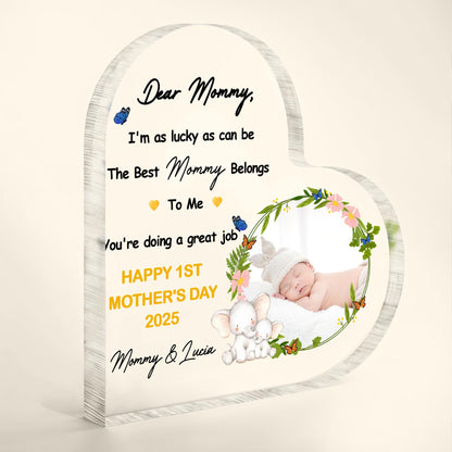 Dear Mommy, I'm As Lucky As Can Be, Personalized Heart Shaped Acrylic Plaque, Gift For Mothers