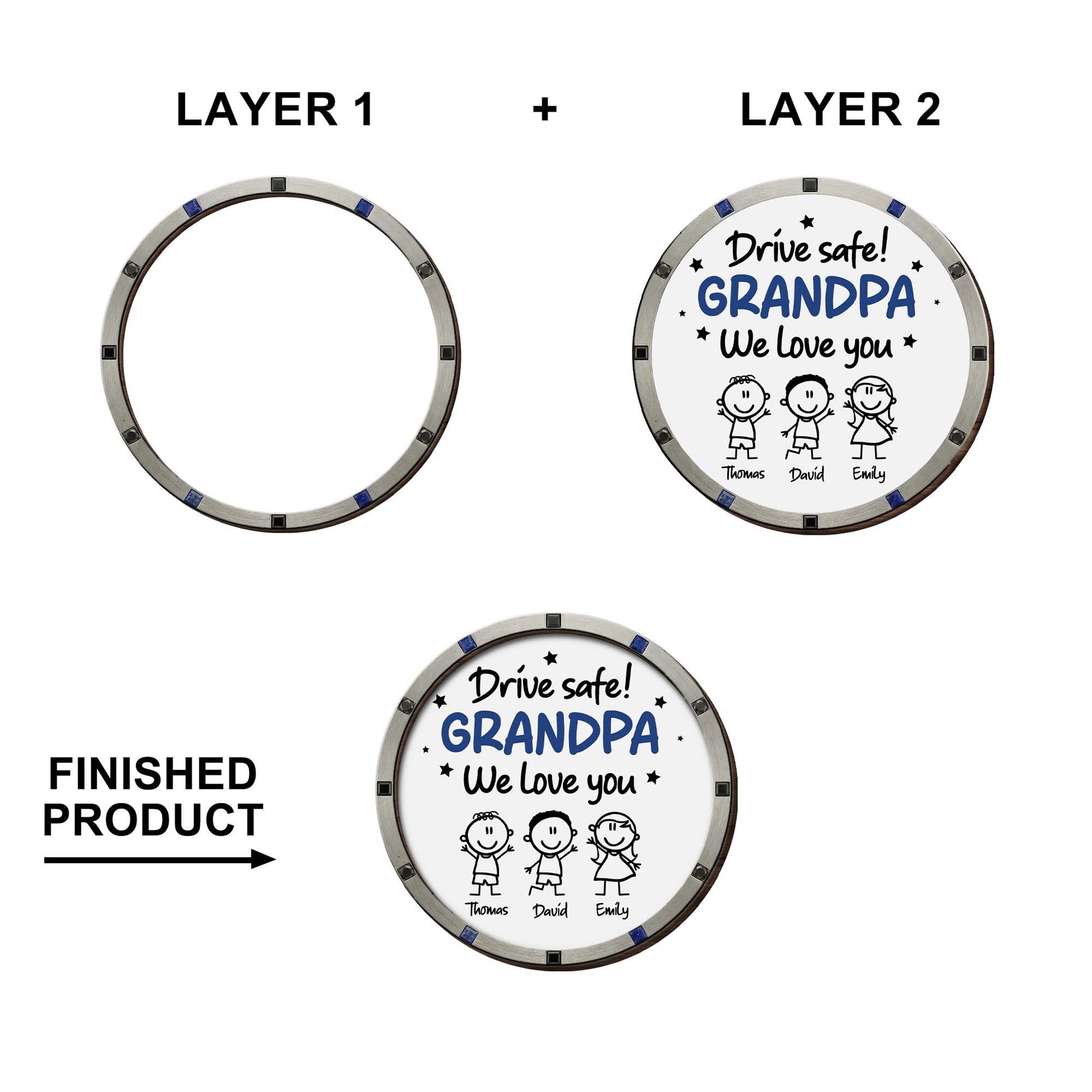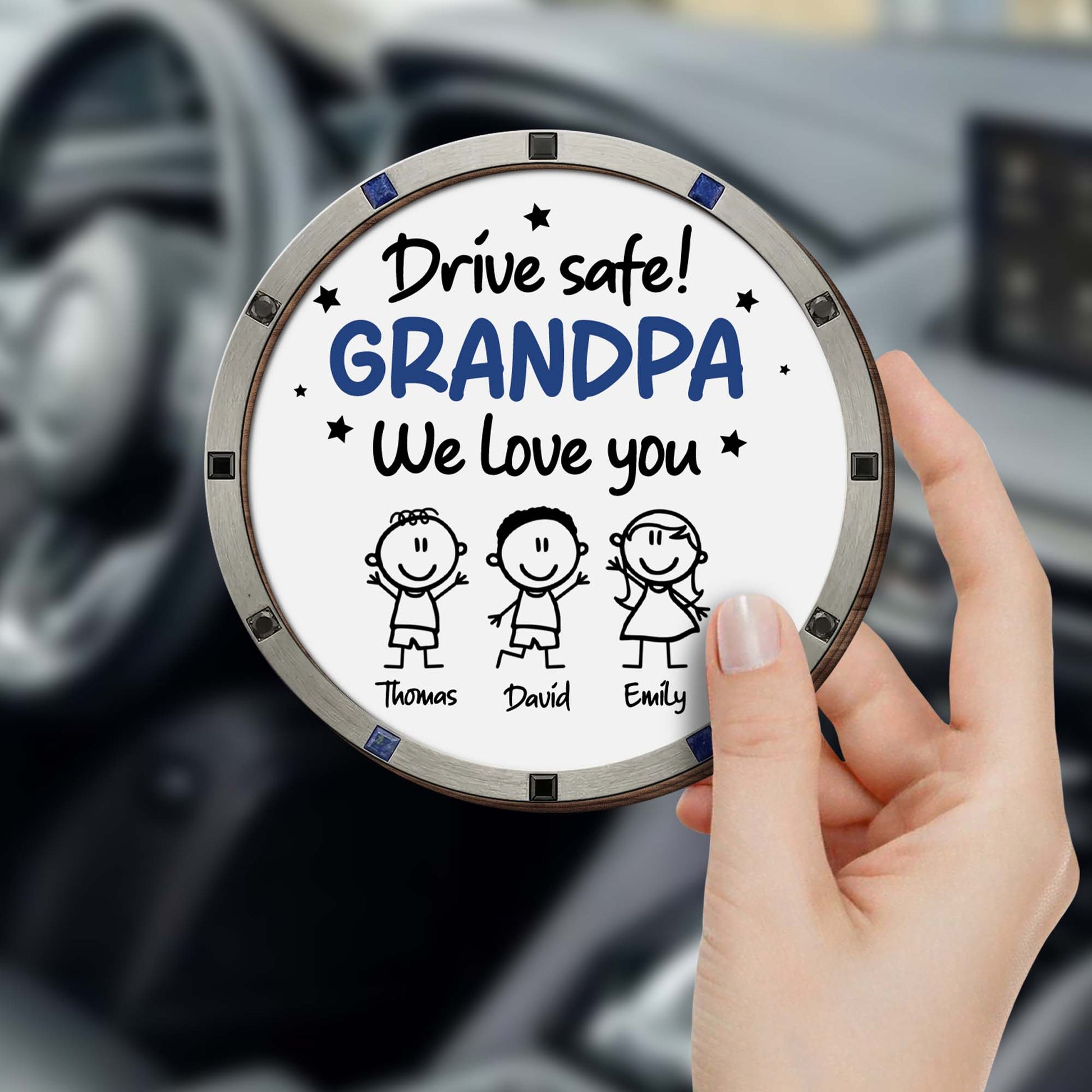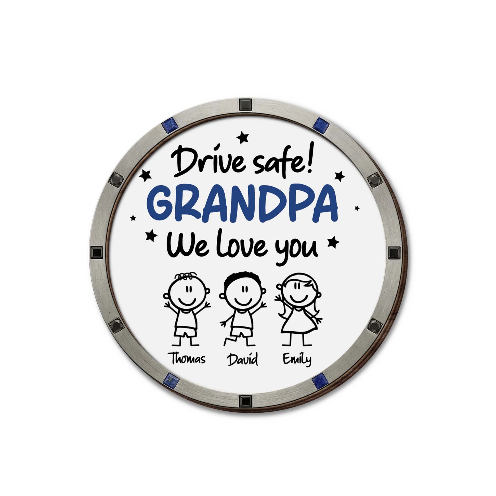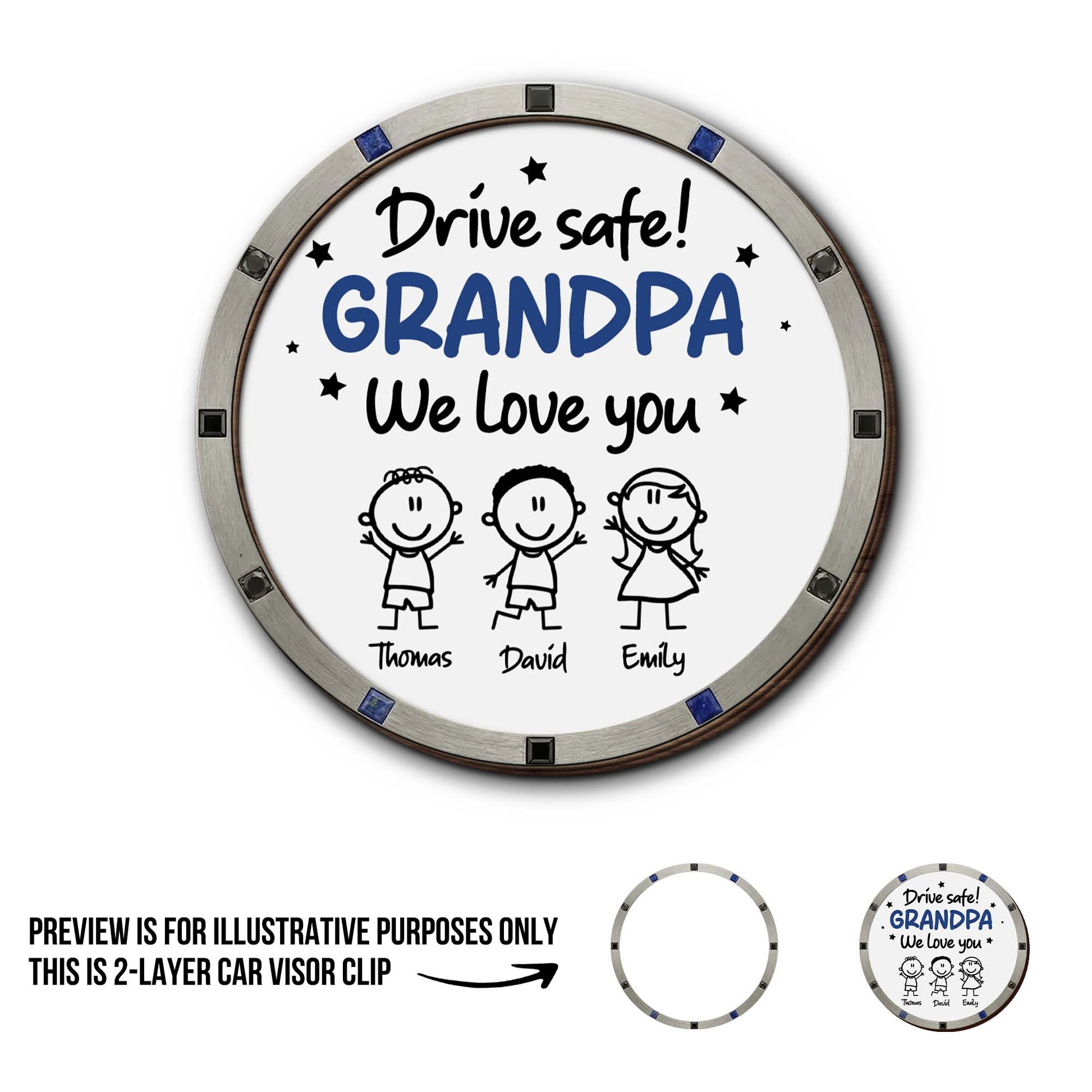 Drive Safe We Love You, Cartoon Figures And Stars, Custom Shaped Car Visor Clip, Gift For Grandparents