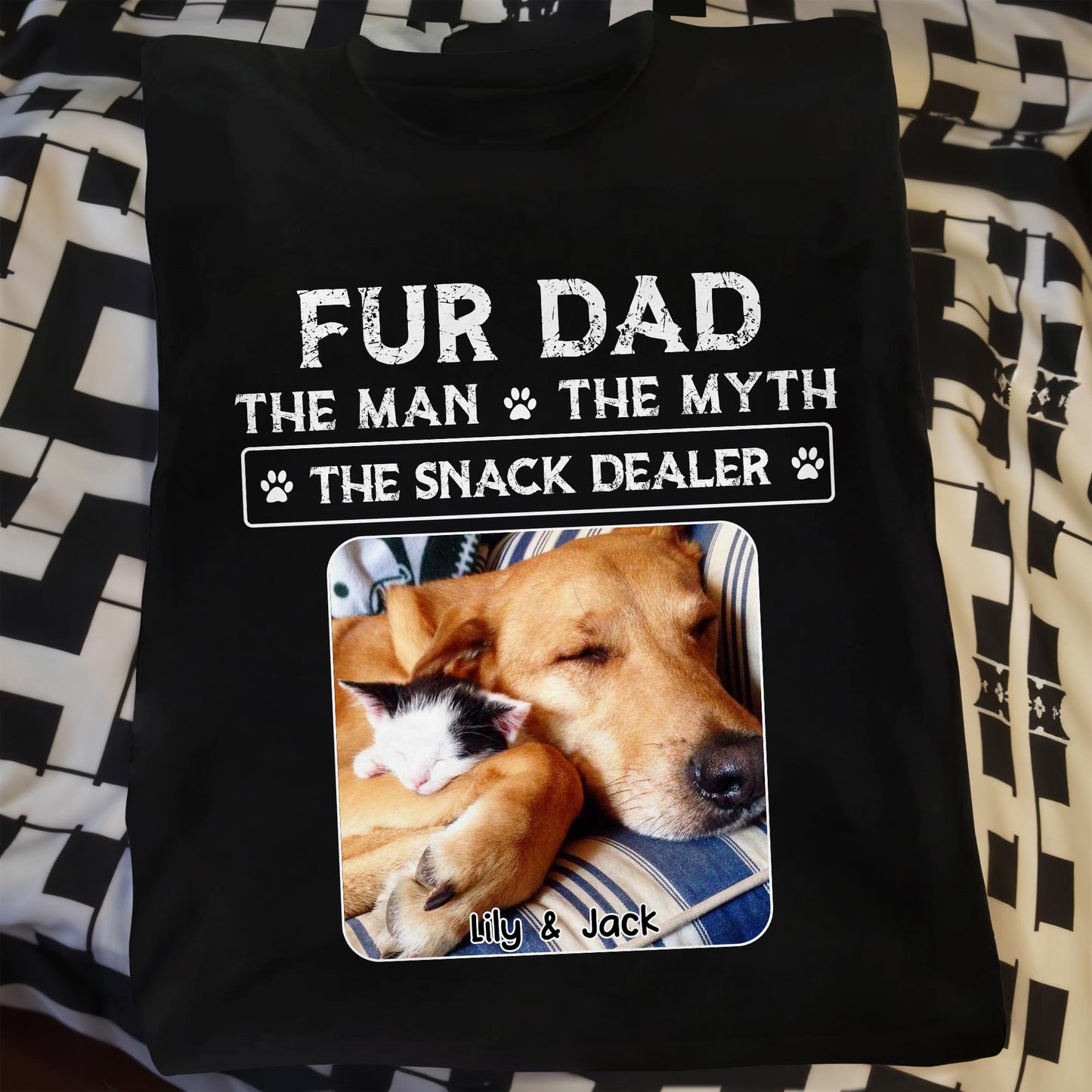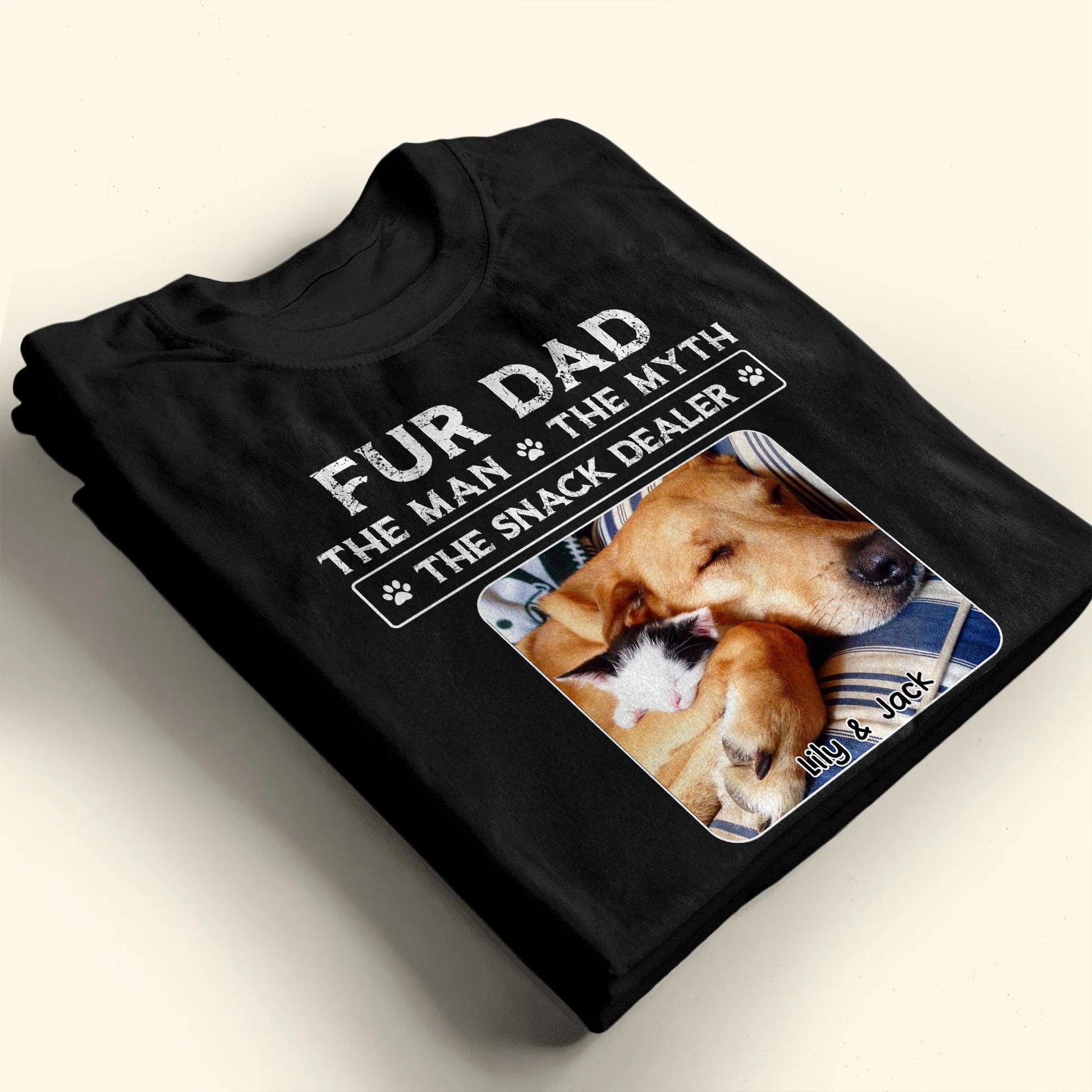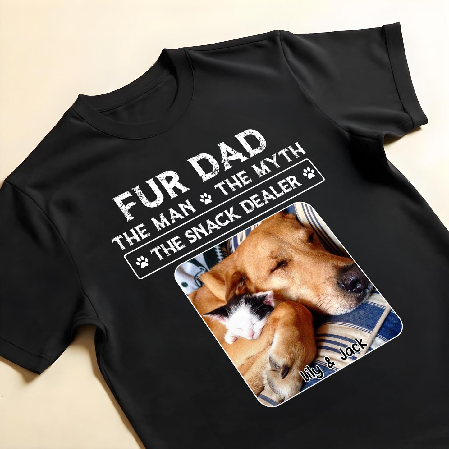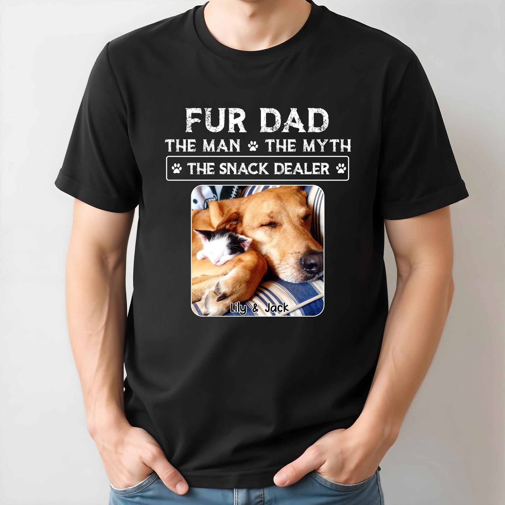 Papá Peludo, El Hombre, El Mito, El Vendedor de Snacks, Huellas y Mascotas Durmientes - Camiseta y Sudadera con Capucha Unisex Personalizadas - DOG034_BBAS