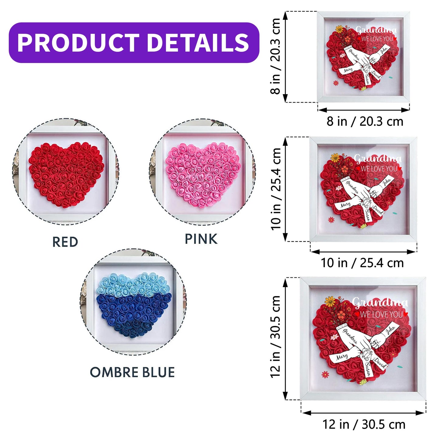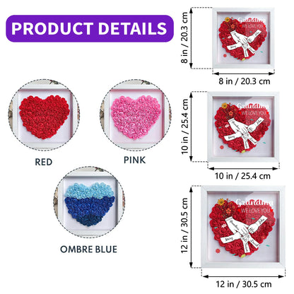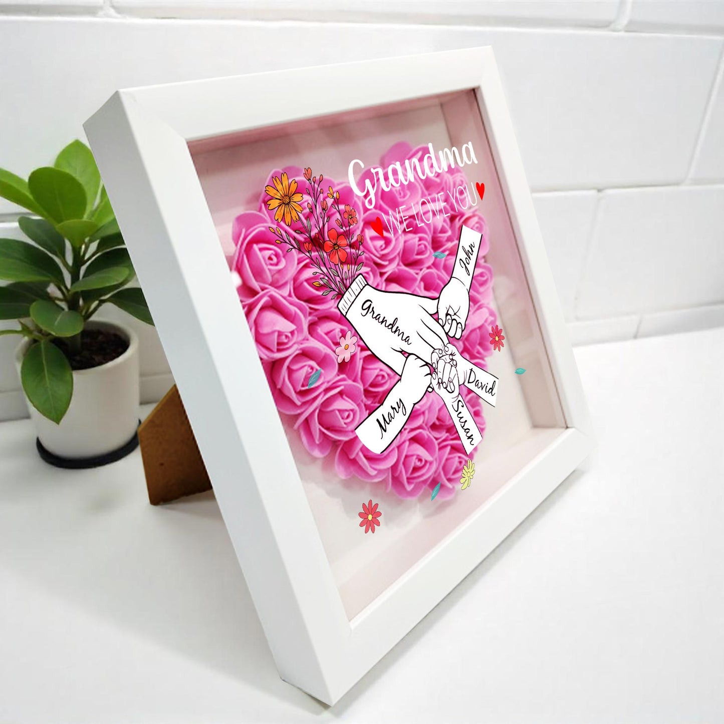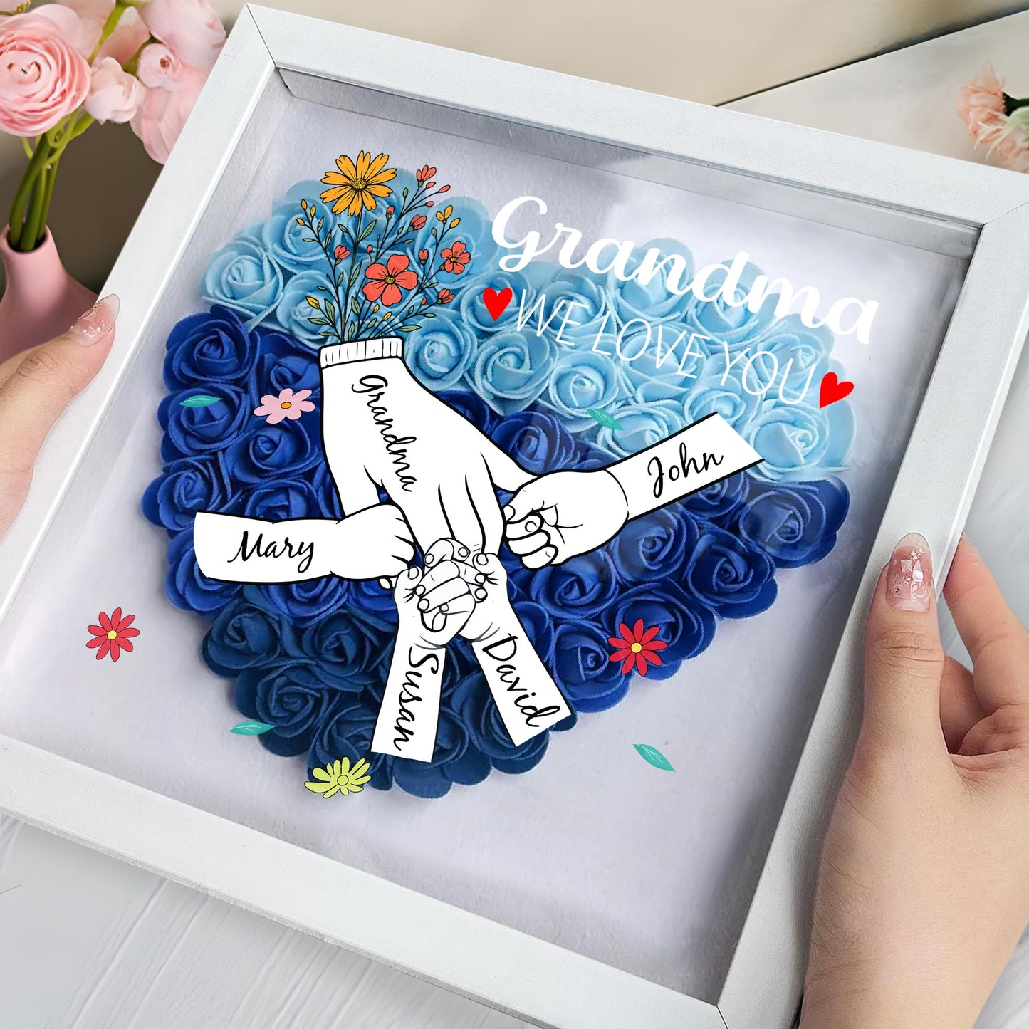 Grandma, We Love You, Flowers and Hands, Personalized Flower Shadow Box, Gift For Grandma